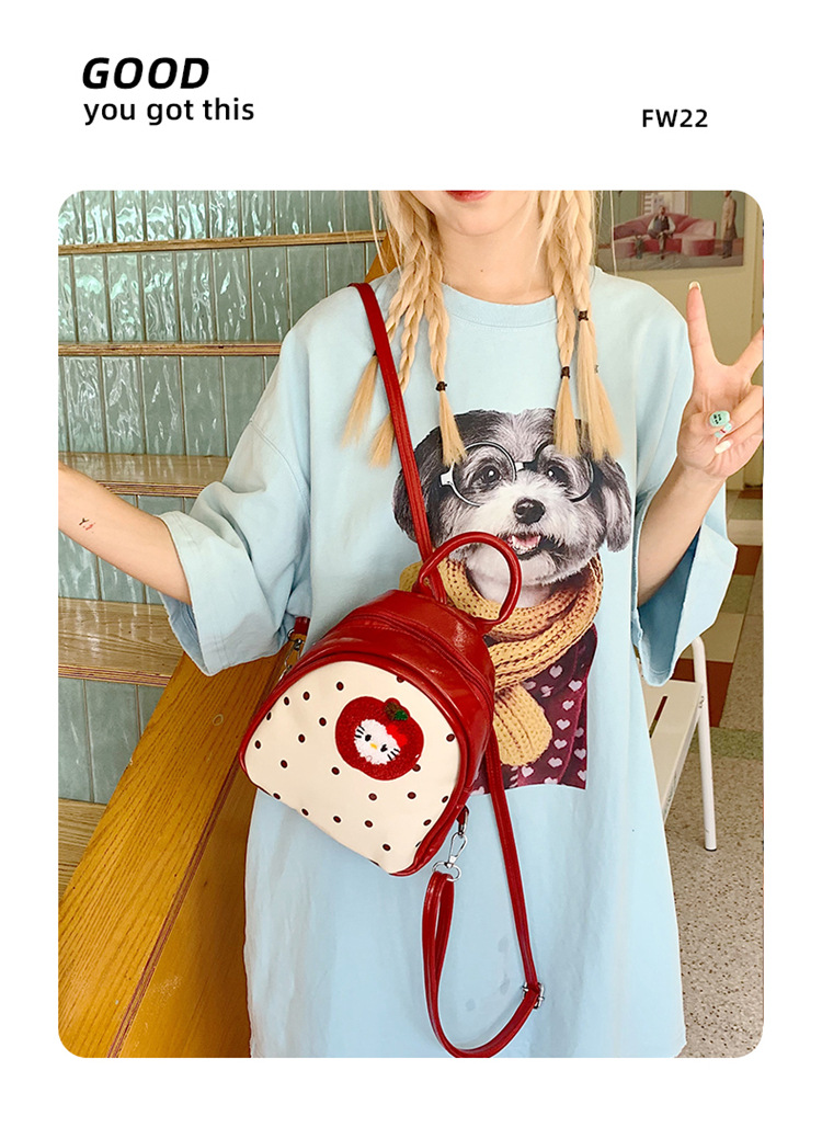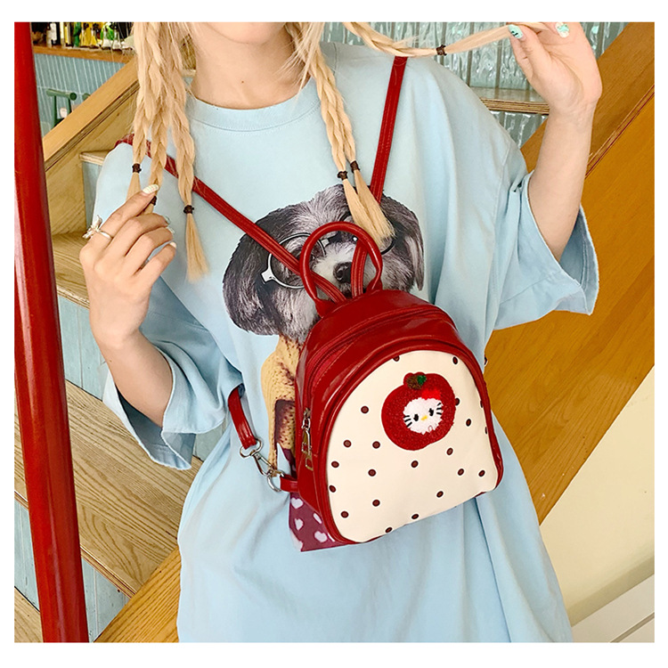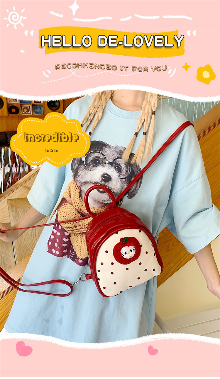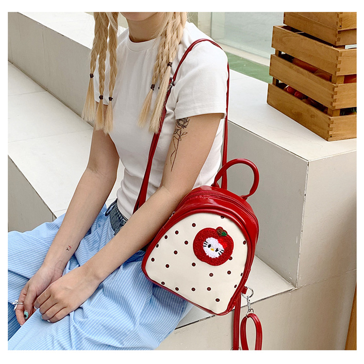 인기 레드 애플 폴카 도트 KT 고양이 배낭 오리지널 틈새 귀여운 가방 여성 다용도 핸드백 미니 가방