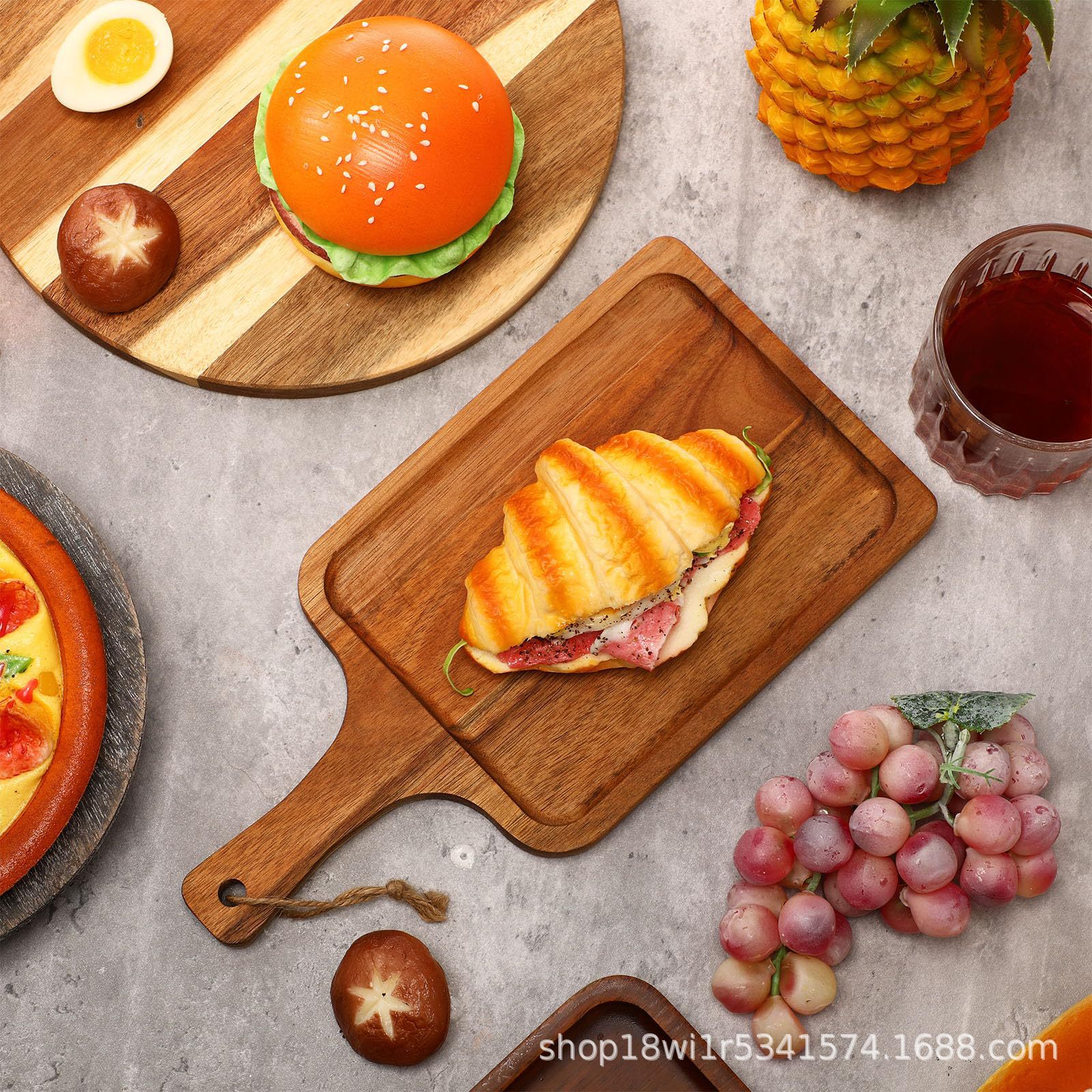 단단한 나무 도마 트레이 손잡이가 있는 사각형 도마 끈 양면 절단 도마 과일 도마 피자 트레이