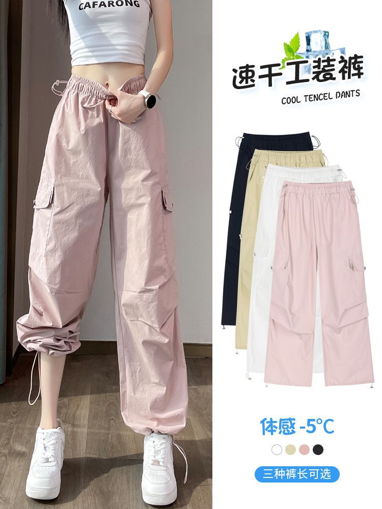 여성용 아메리칸 오버올 여름 얇은 2024 새로운 스타일 작은 속건성 캐주얼 와이드 레그 하이킹 스포츠 바지 여성용스토어 가기