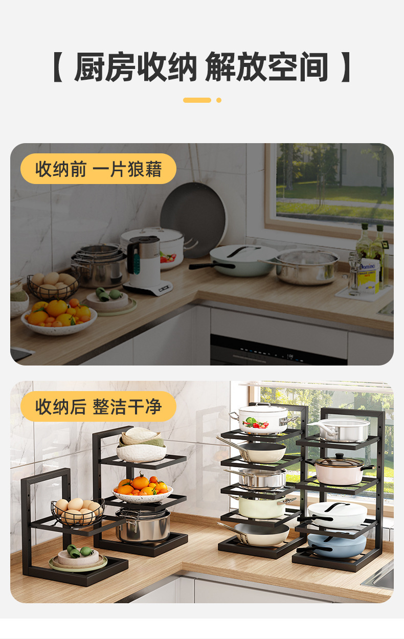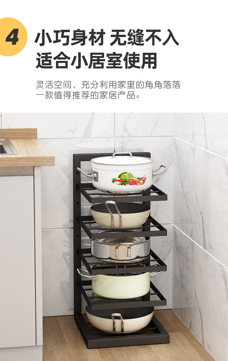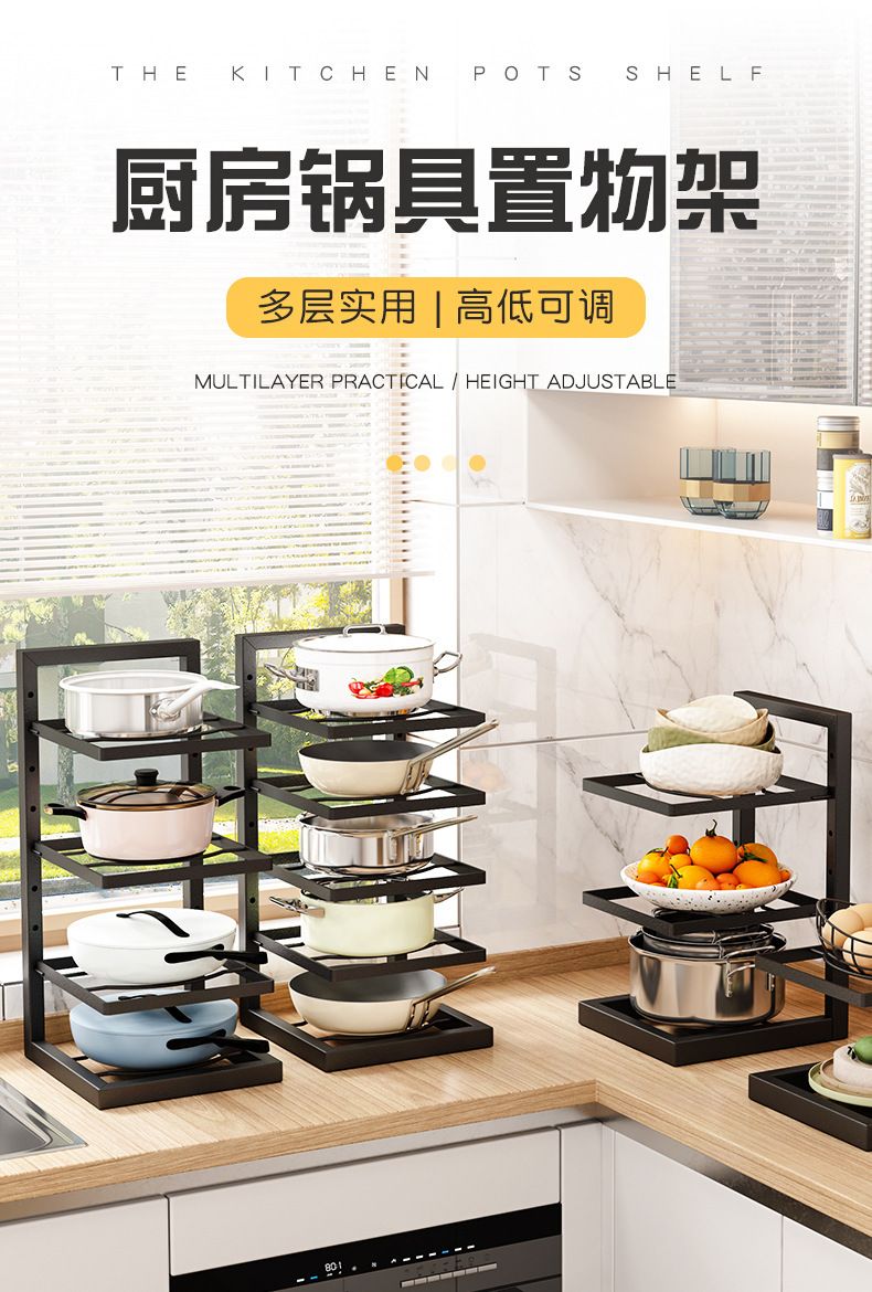 새로운 조리대 냄비 및 잡화 보관 랙 주방 바닥 스탠딩 다층 보관 랙 높이 조절 가능한 보관 냄비 랙