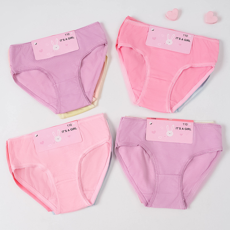 국경 간 어린이 속옷 순면 소녀 팬티 치아 가장자리 단색 판지 팩 대외 무역 소녀 팬티 단색스토어 가기