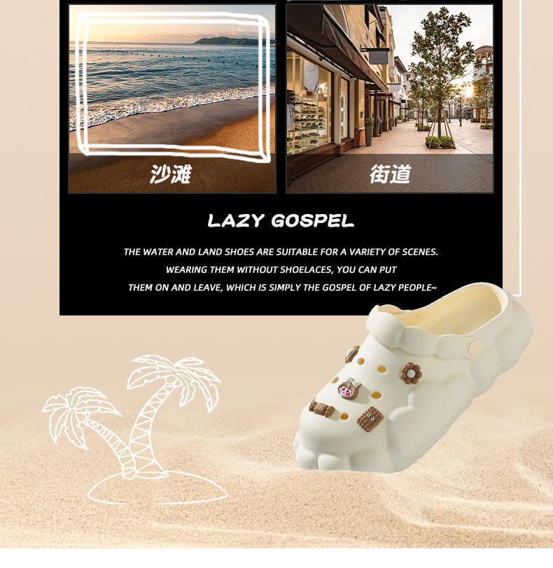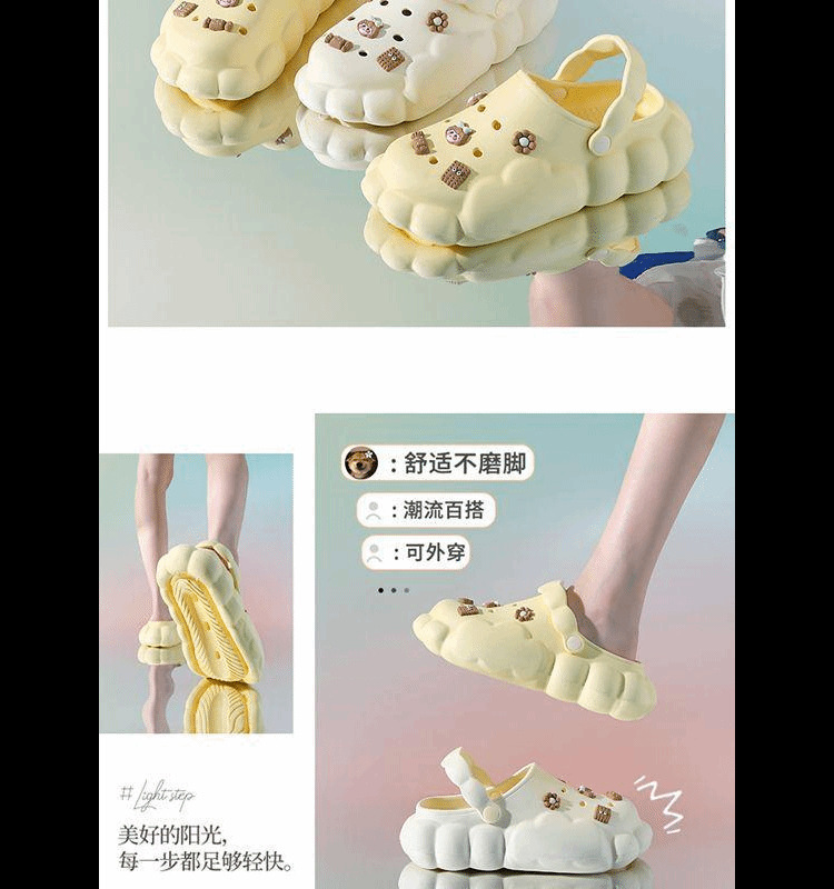 여름 아우터로 입기 좋은 심플한 클라우드 나막신, 여성용 신상 미끄럼 방지 두꺼운 밑창 토캡 샌들, 여성용 비치 슬리퍼스토어 가기