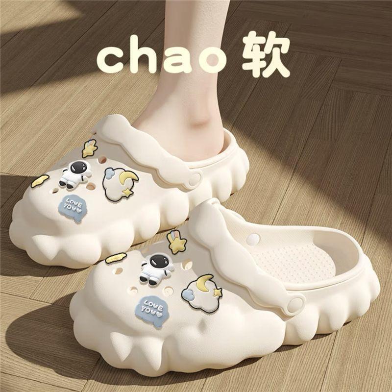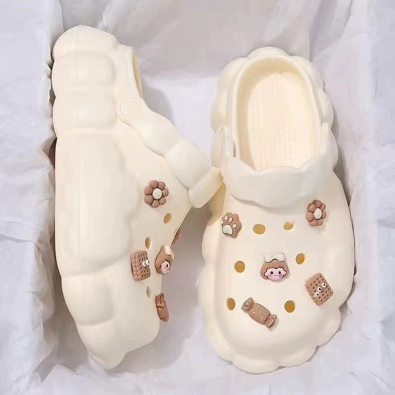 여름 아우터로 입기 좋은 심플한 클라우드 나막신, 여성용 신상 미끄럼 방지 두꺼운 밑창 토캡 샌들, 여성용 비치 슬리퍼