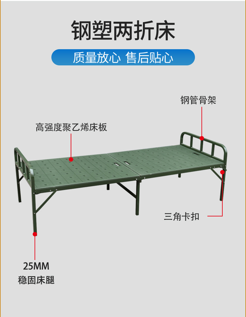 싱글 침대 접이식 침대 야외용 철제 플라스틱 침대 제조업체 도매 철제 침대 접이식 휴대용 플라스틱 스틸 침대 야외 레저용