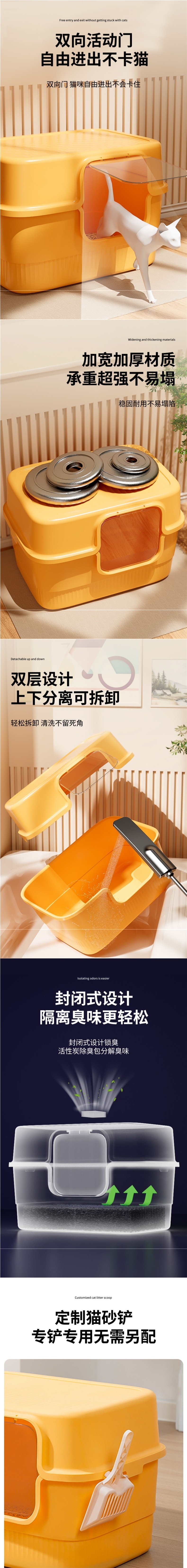 완전 밀폐형 고양이 화장실, 탈취 및 탈취 고양이 화장실, 물 튀김 방지 고양이 화장실, 애완동물을 위한 초대형 고양이 화장실