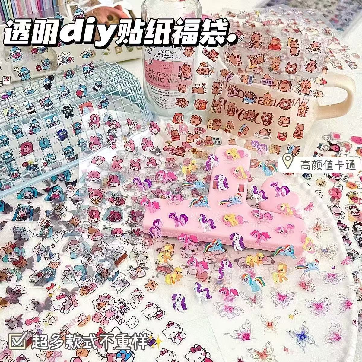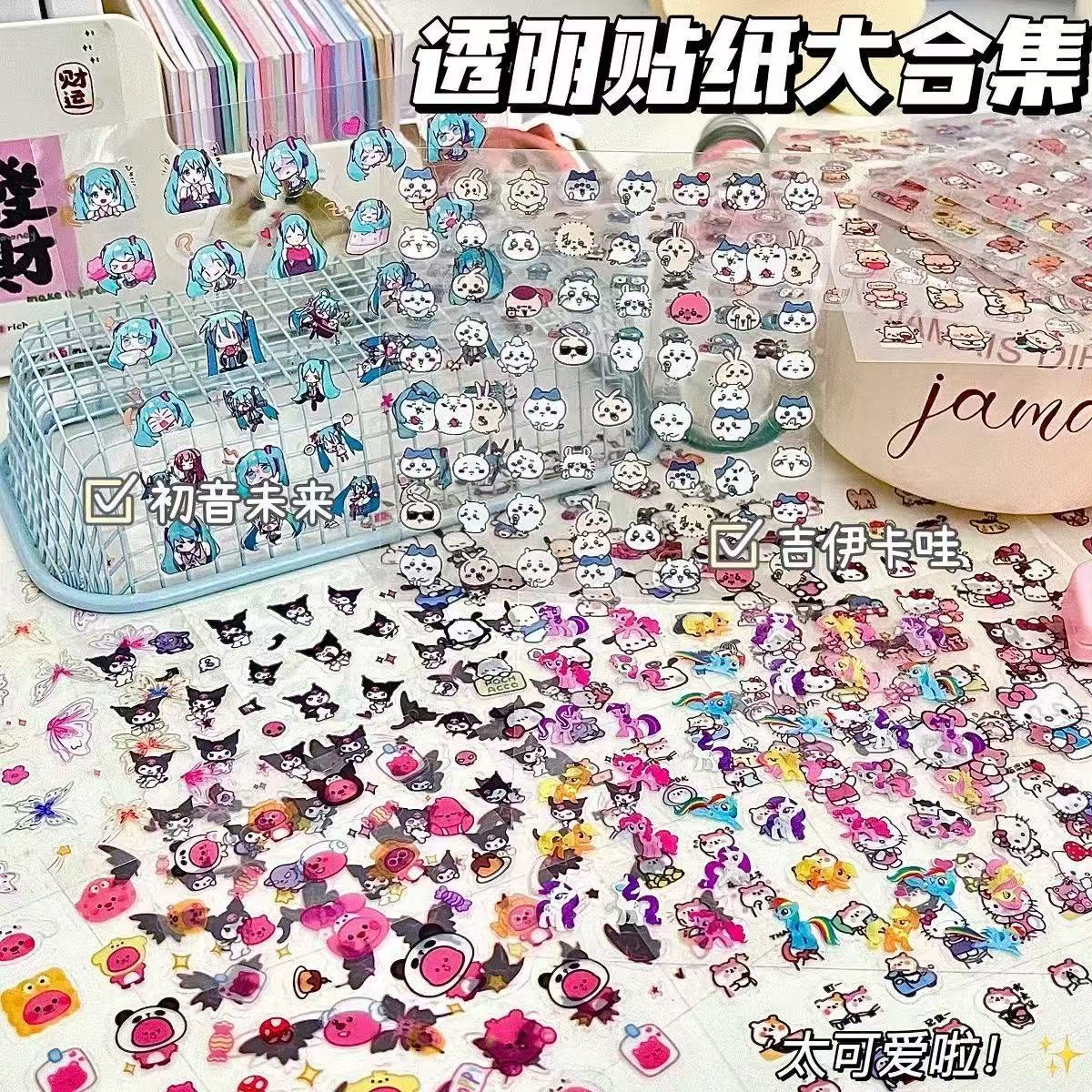 고급스러운 만화 투명 방수 스티커, 귀여운 학생 장식 핸드북 스티커 소재, 펜 홀더 스티커 컬렉션스토어 가기