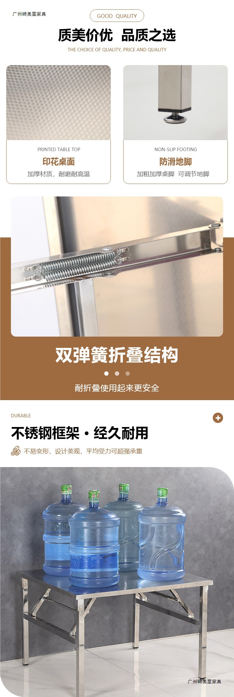 스테인레스 스틸 접이식 테이블 식탁 홈 바베큐 야외 테이블 식사 야시장 스톨 휴대용 테이블 사각형 직사각형