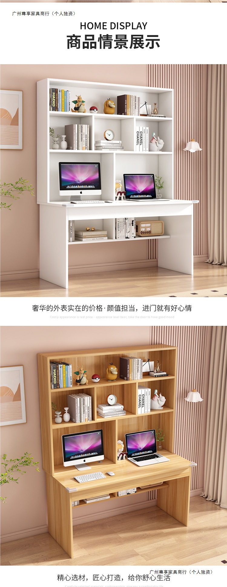 단단한 나무 컴퓨터 책상 학습 책상 책장 조합 책장 통합 데스크탑 홈 간단한 침실 학생 책상스토어 가기