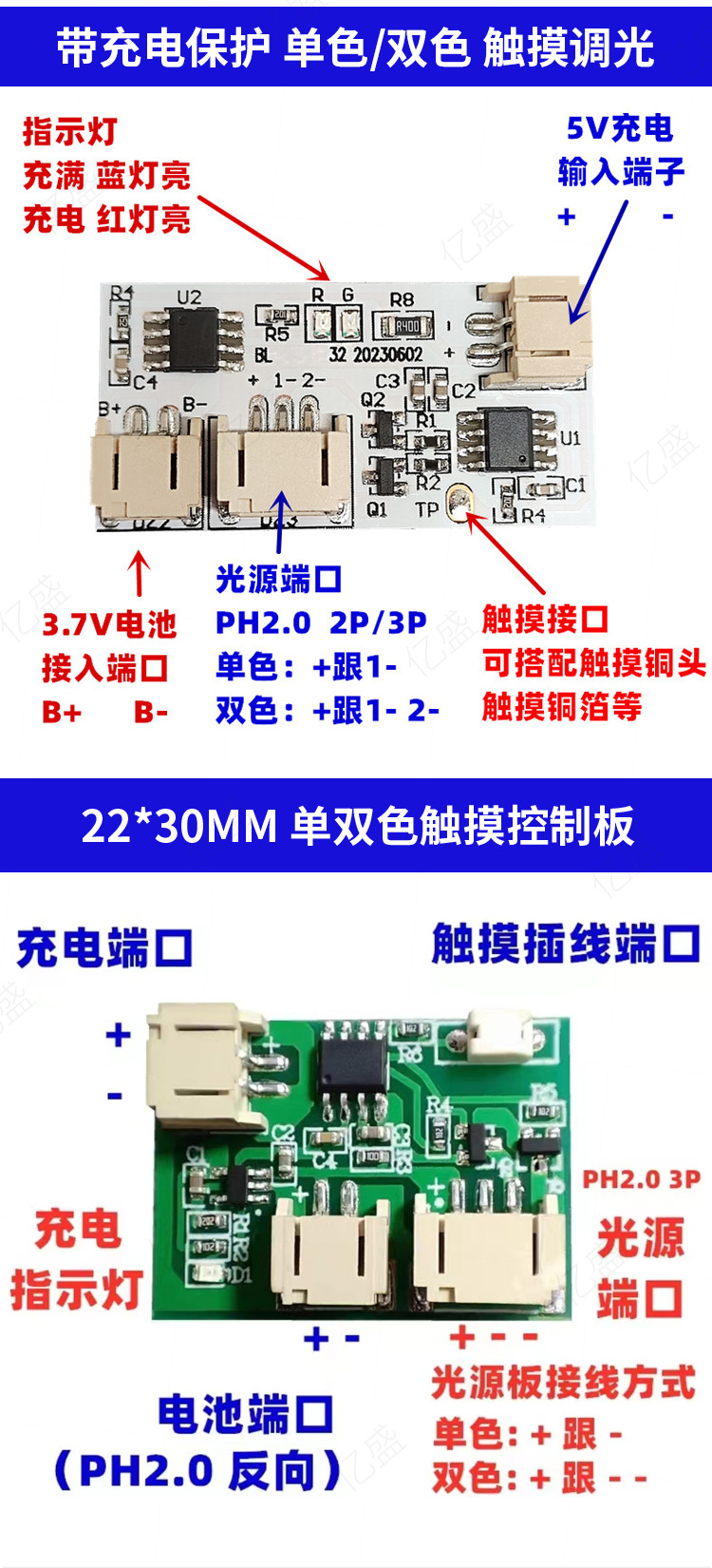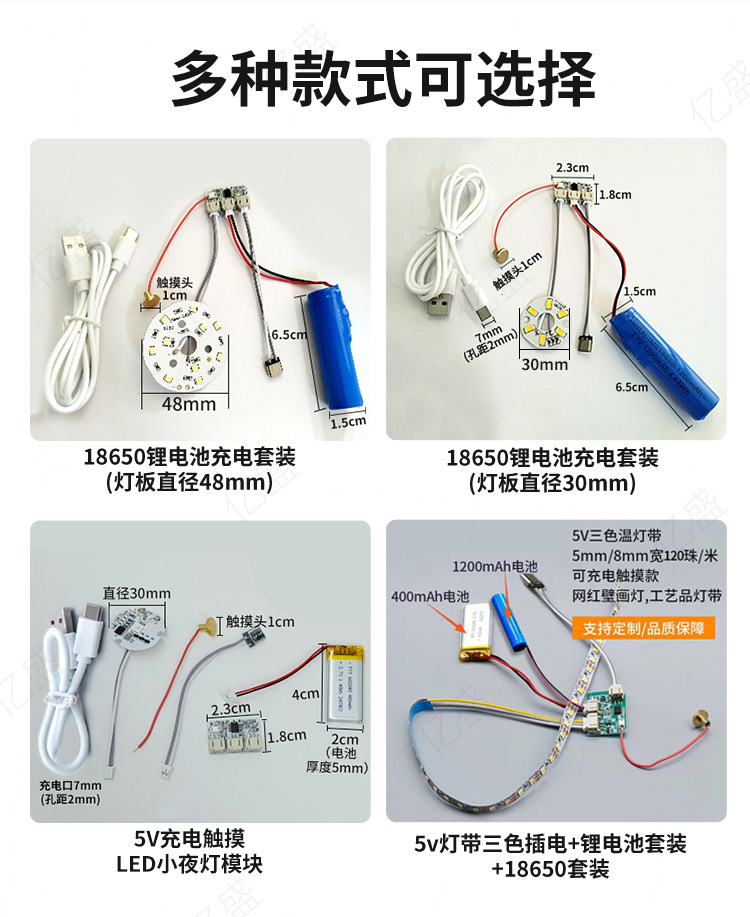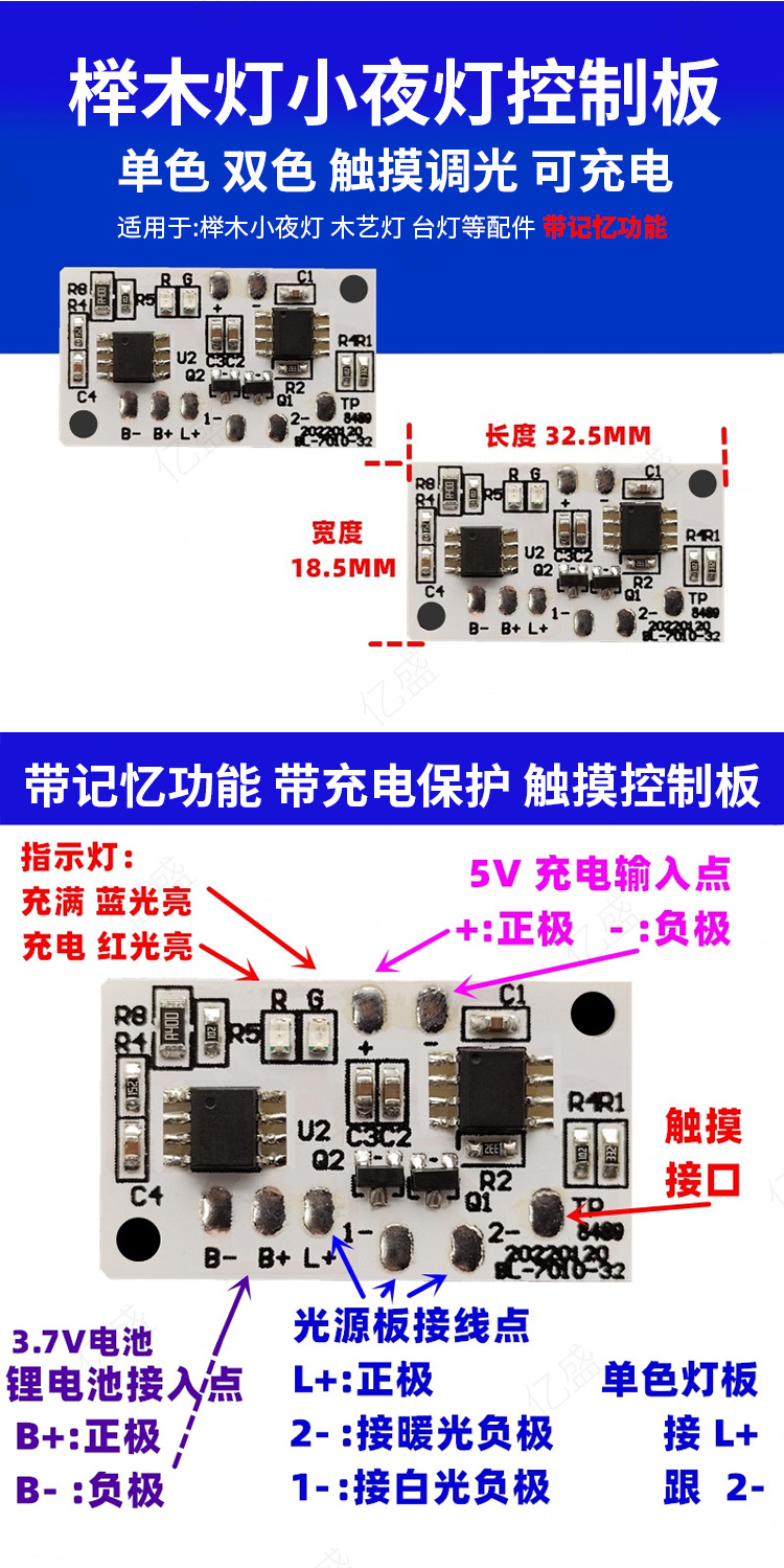 5V 단일 및 이중 색상 다채로운 터치 디밍 테이블 램프 모듈 솔더리스 유형-c 충전 제어 보드 led 야간 조명스토어 가기