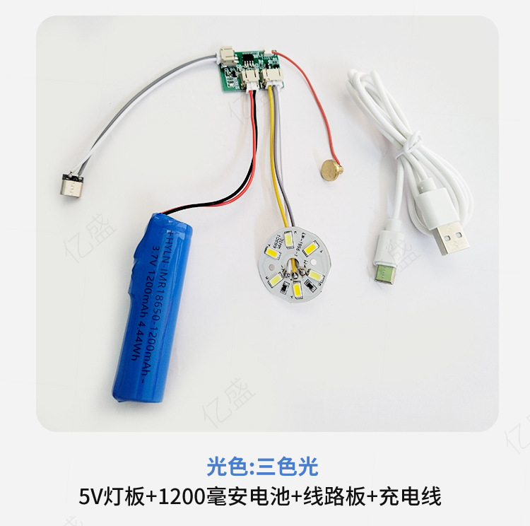 • 3색 조명 10W(18650 배터리 + 회로 기판 + USB 충전 케이블) Typec