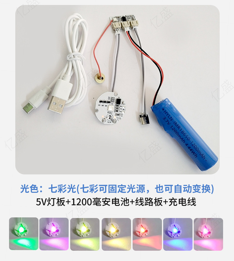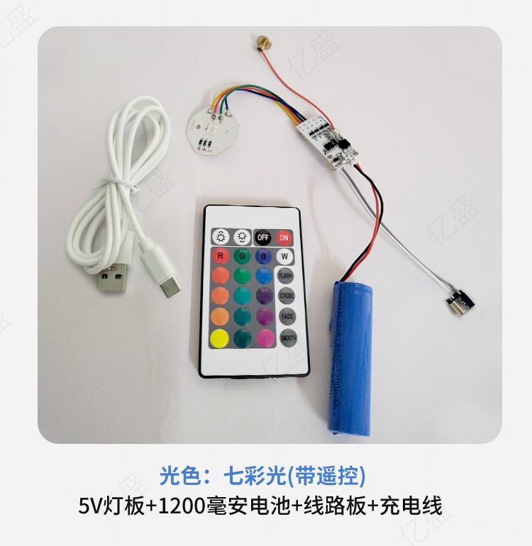 • 리모컨으로 다채로운 색상/고정 색상-3W(리튬 배터리 + 회로 기판 + USB 충전 케이블) Typec