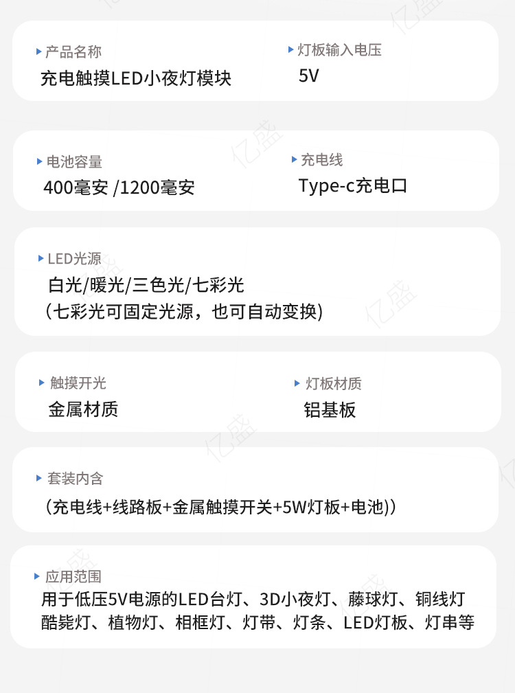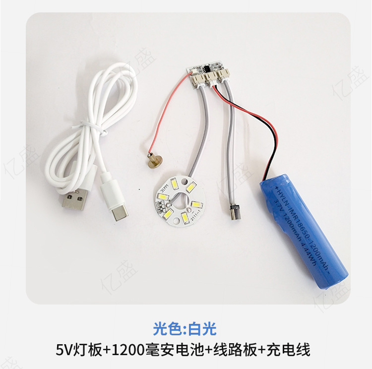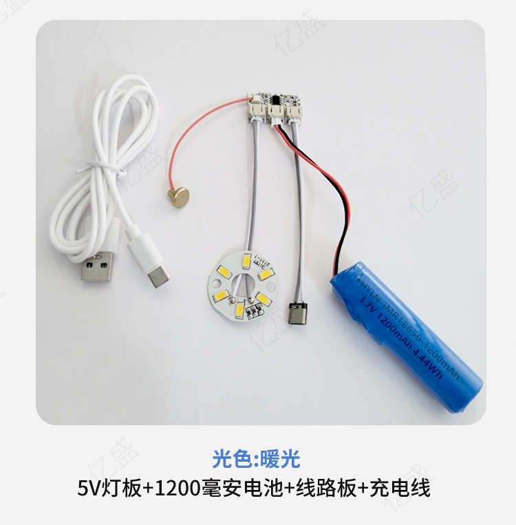 • 따뜻한 빛 5W(리튬 배터리 + 회로 기판 + USB 충전 케이블) Typec