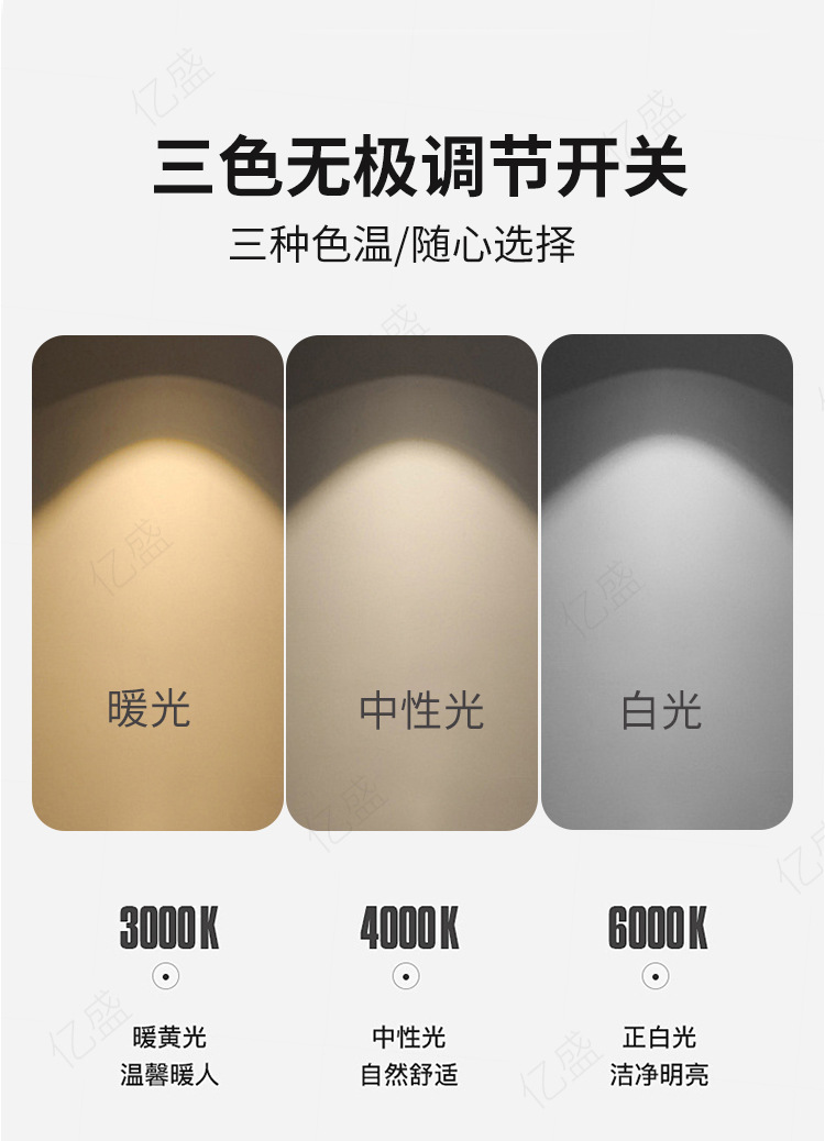 • 3색 조명 6W(리튬 배터리 + 회로 기판 + USB 충전 케이블) Typec