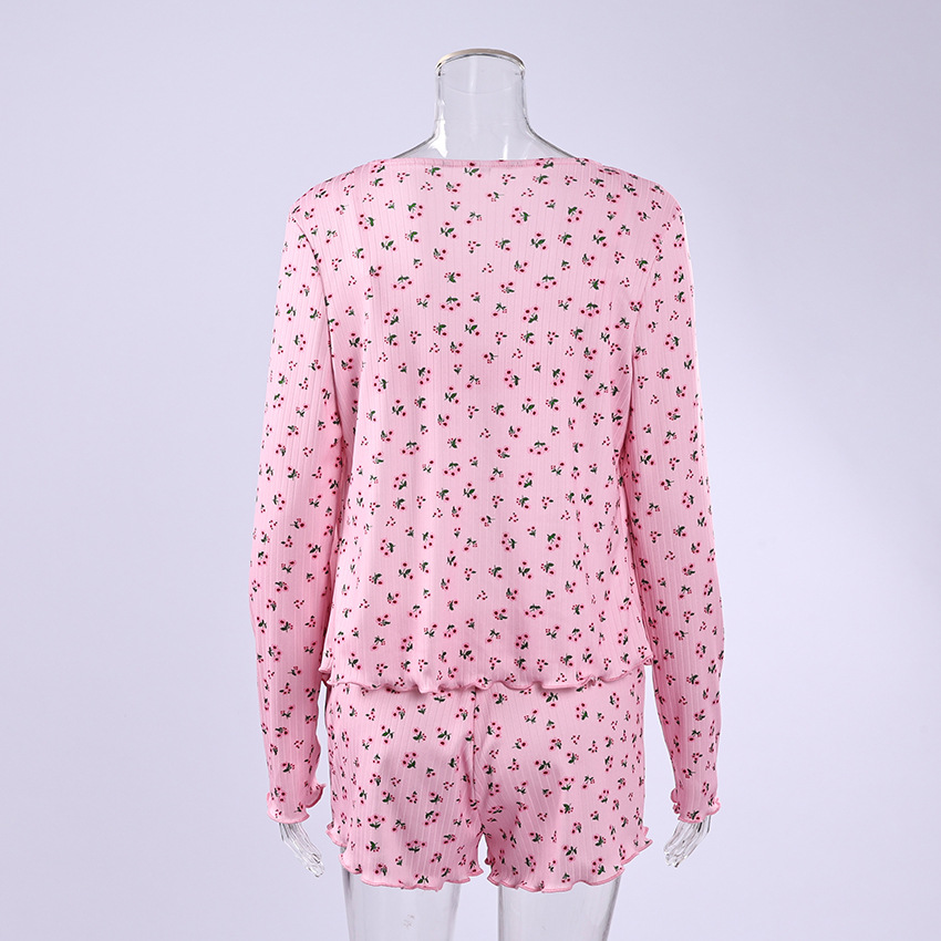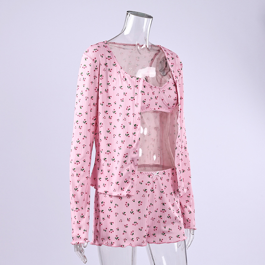 유럽과 미국의 국경을 넘는 2026년 신상 니트 프린트 가디건, 멜빵탑, 편안하고 부드러운 3피스 잠옷 세트, 여성 홈웨어