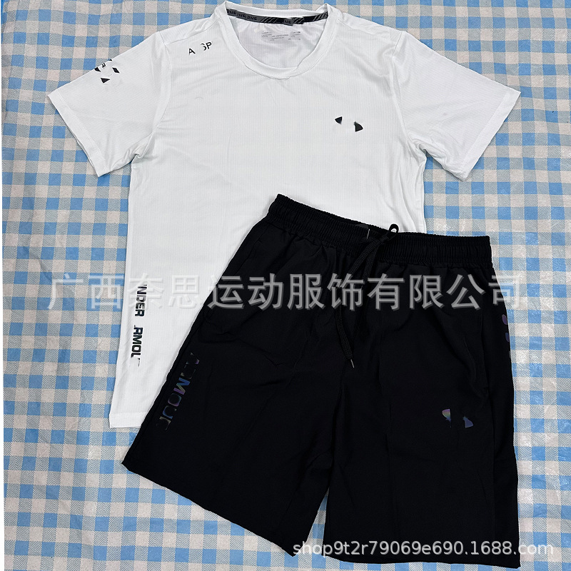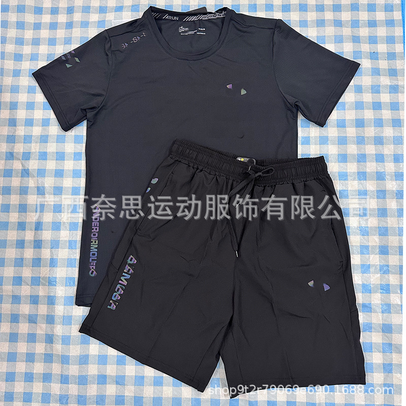 대외 무역 새로운 스포츠 피트니스 러닝 슈트 속건성 통기성 느슨한 데일리 캐주얼 반팔 반바지 남성 도매 주문
