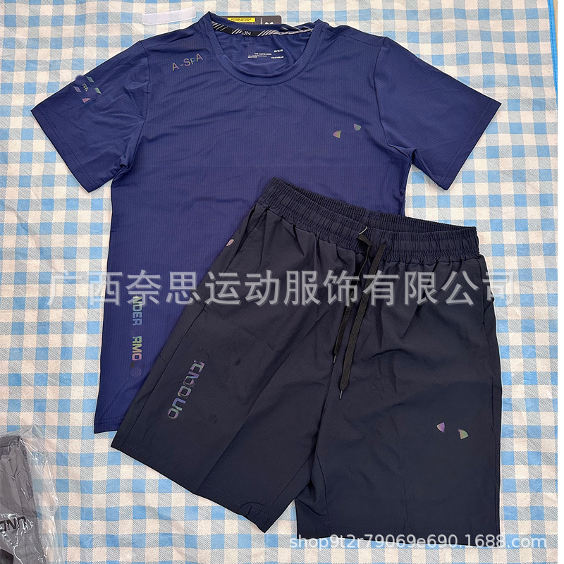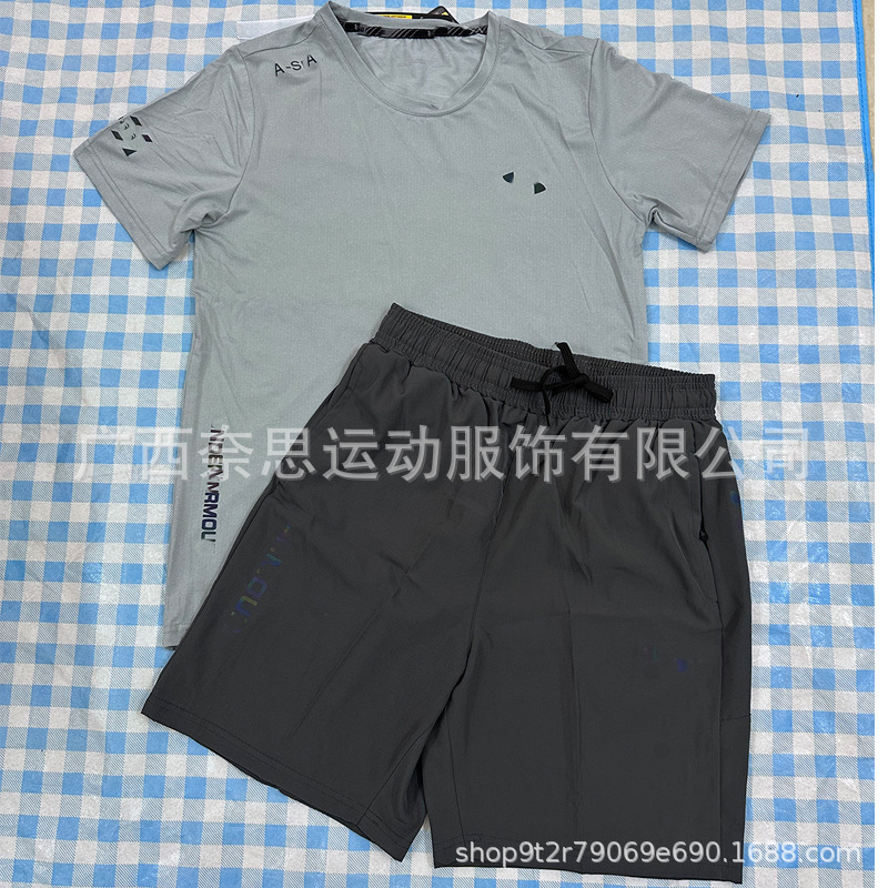대외 무역 새로운 스포츠 피트니스 러닝 슈트 속건성 통기성 느슨한 데일리 캐주얼 반팔 반바지 남성 도매 주문스토어 가기