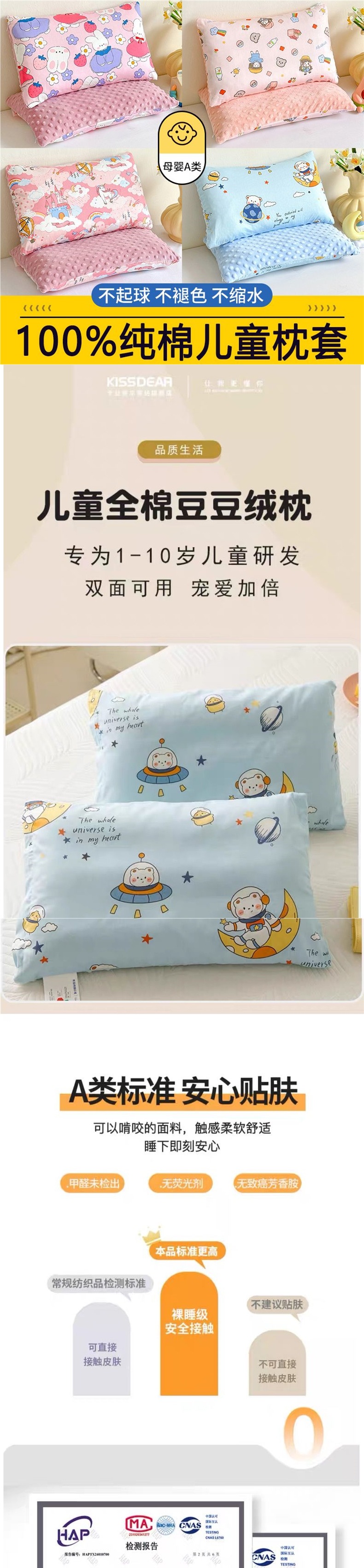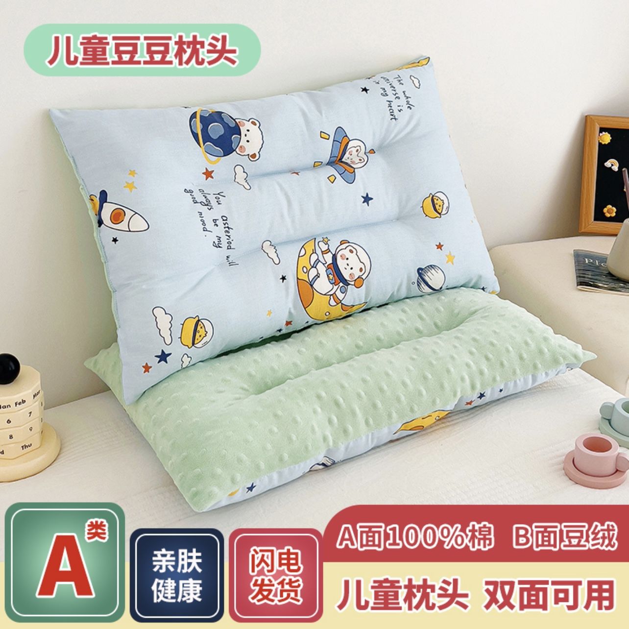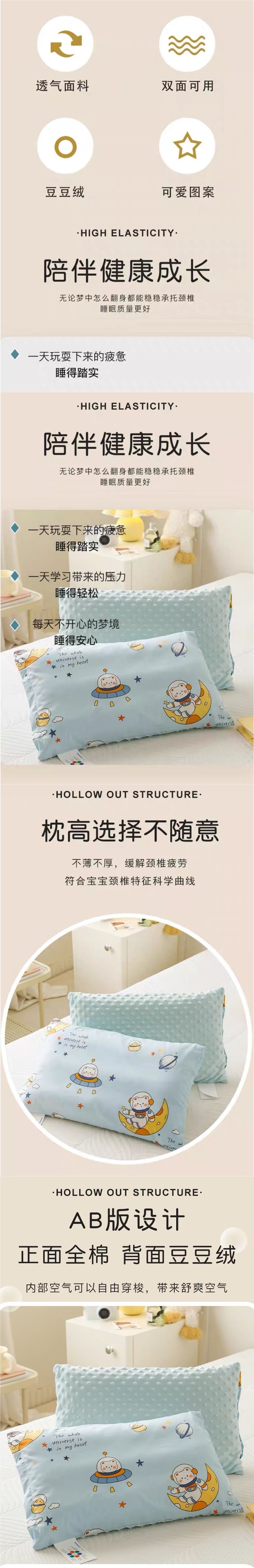 면 A급 어린이 베개 코어, 탈부착 및 세탁 가능, 유치원생, 학생, 진정용 콩베개, 사계절 모두 사용 가능