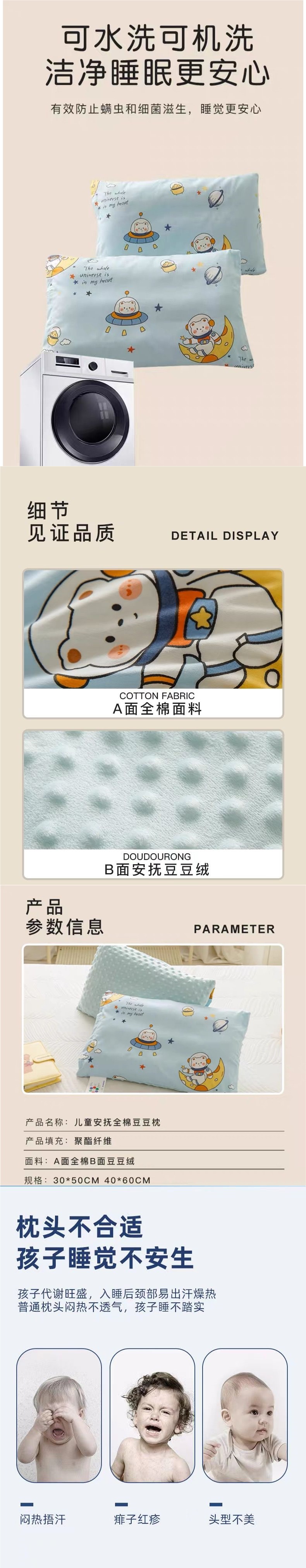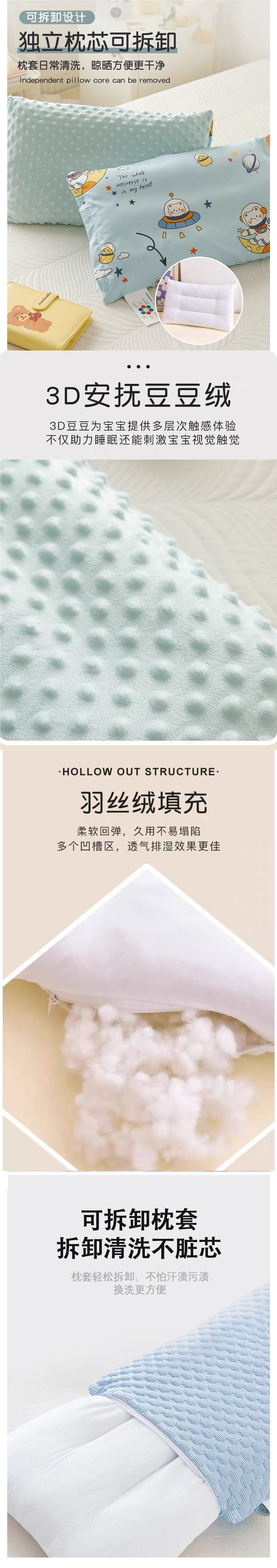 면 A급 어린이 베개 코어, 탈부착 및 세탁 가능, 유치원생, 학생, 진정용 콩베개, 사계절 모두 사용 가능스토어 가기