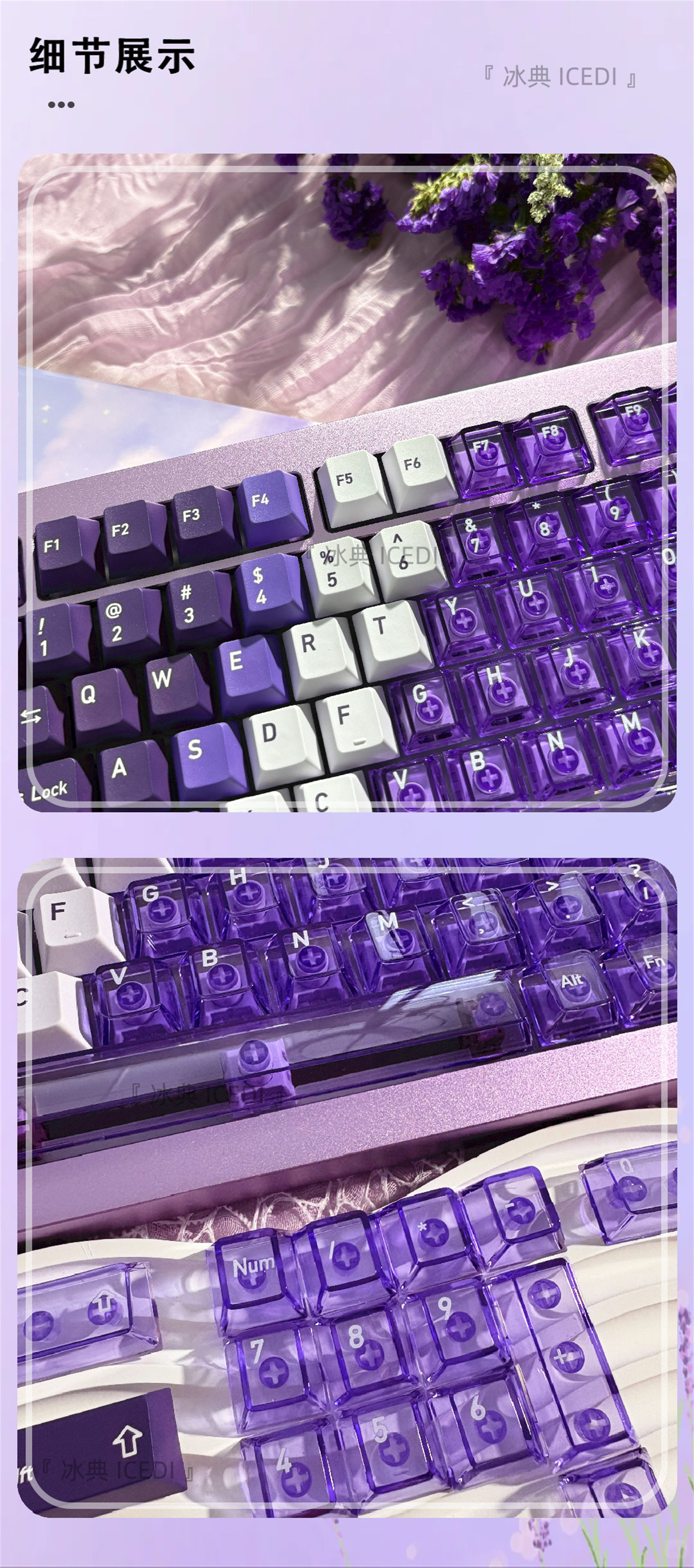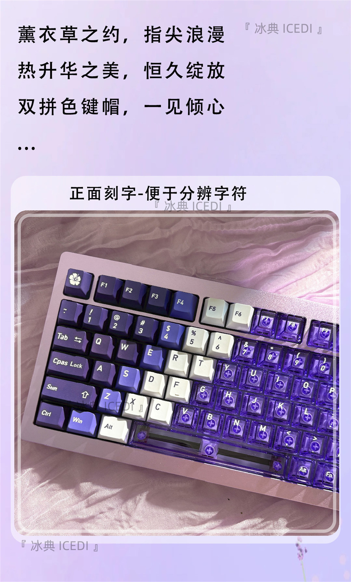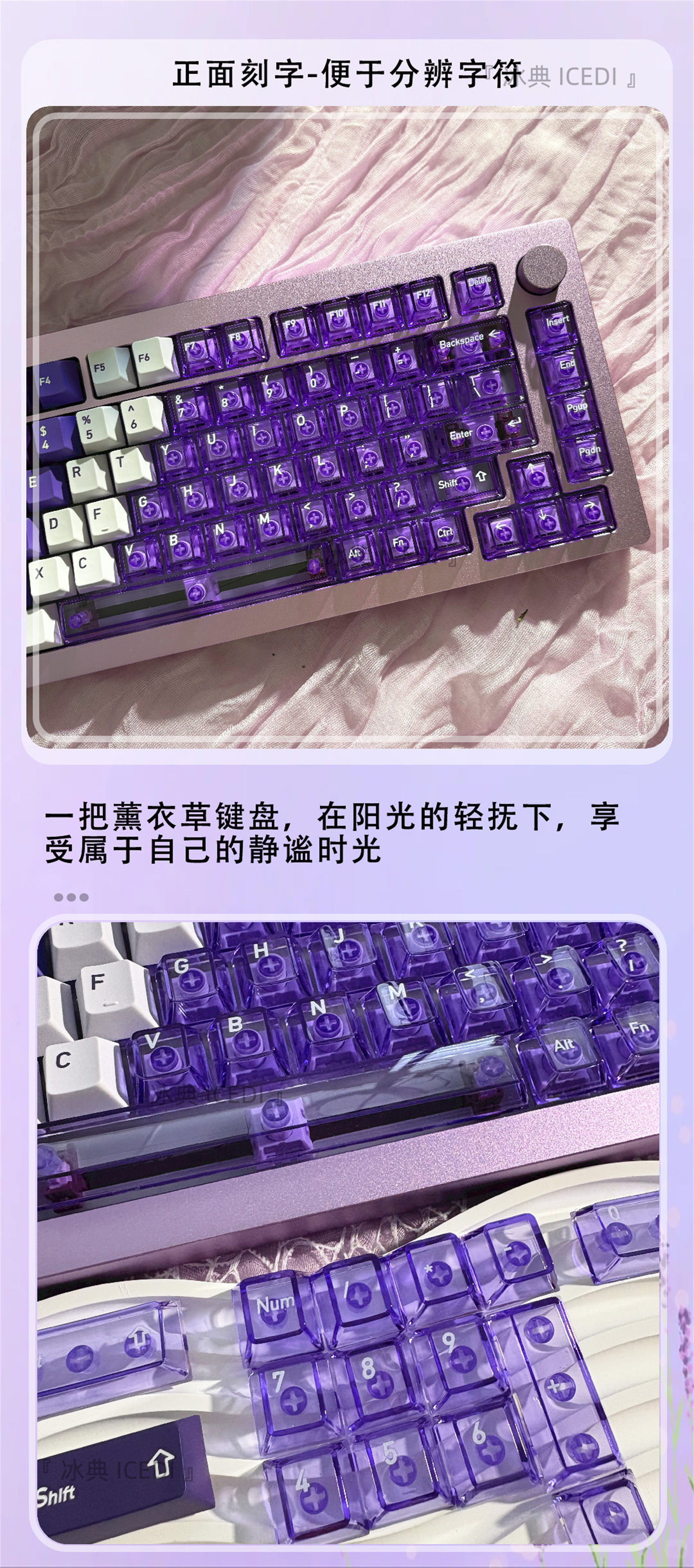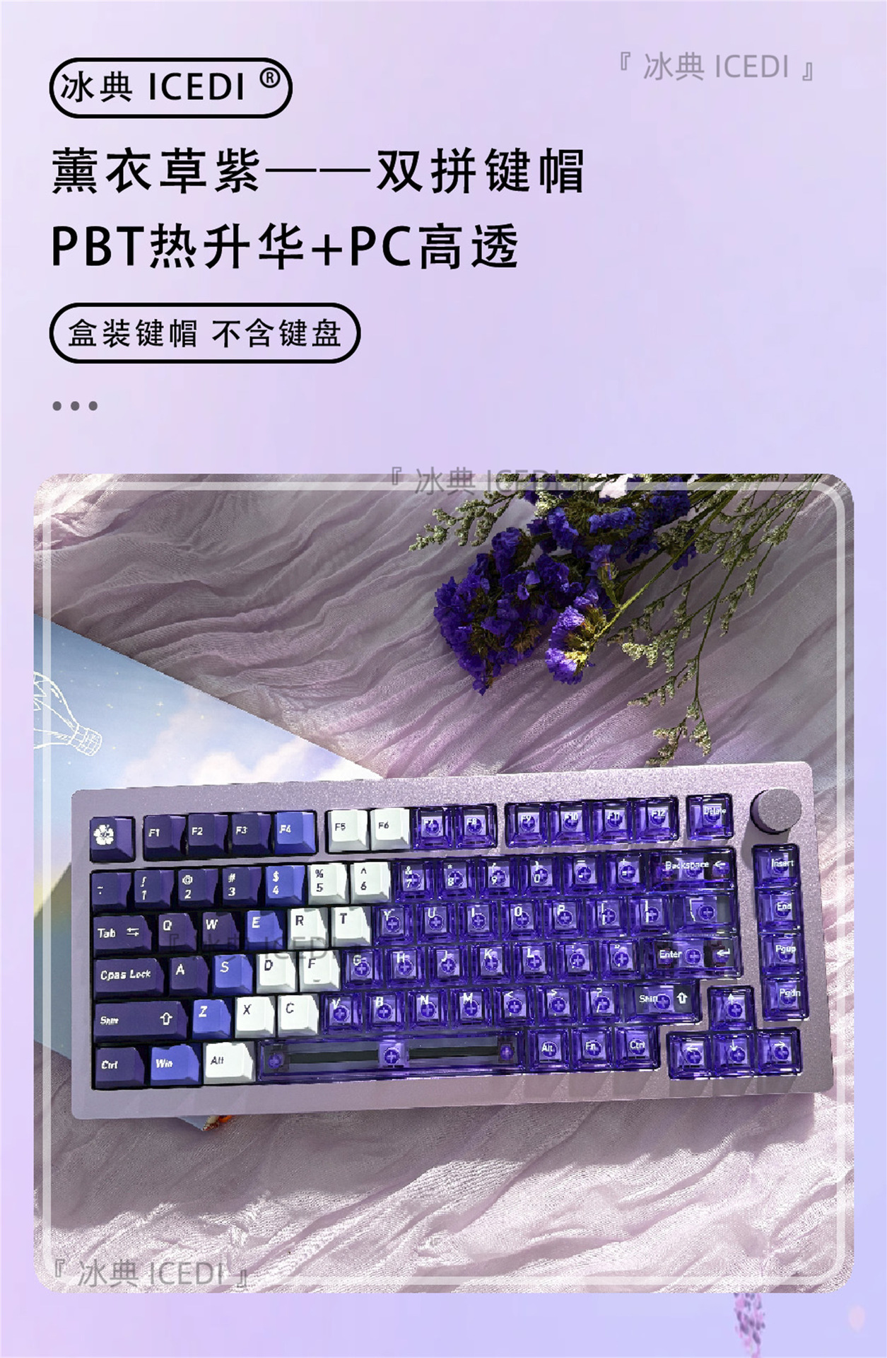 Bingdian 라벤더 보라색 승화 투명 기계식 키캡 마그네틱 축 Bee Wooting 오리지널 더블 세트스토어 가기