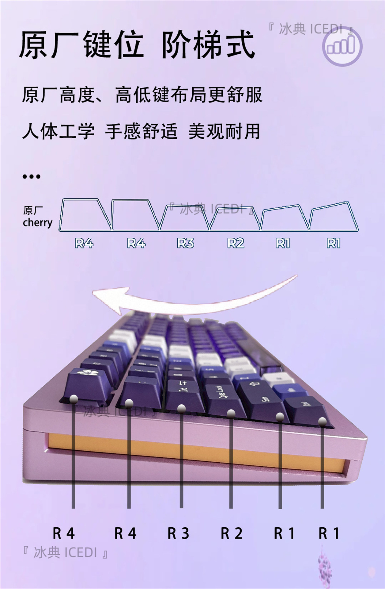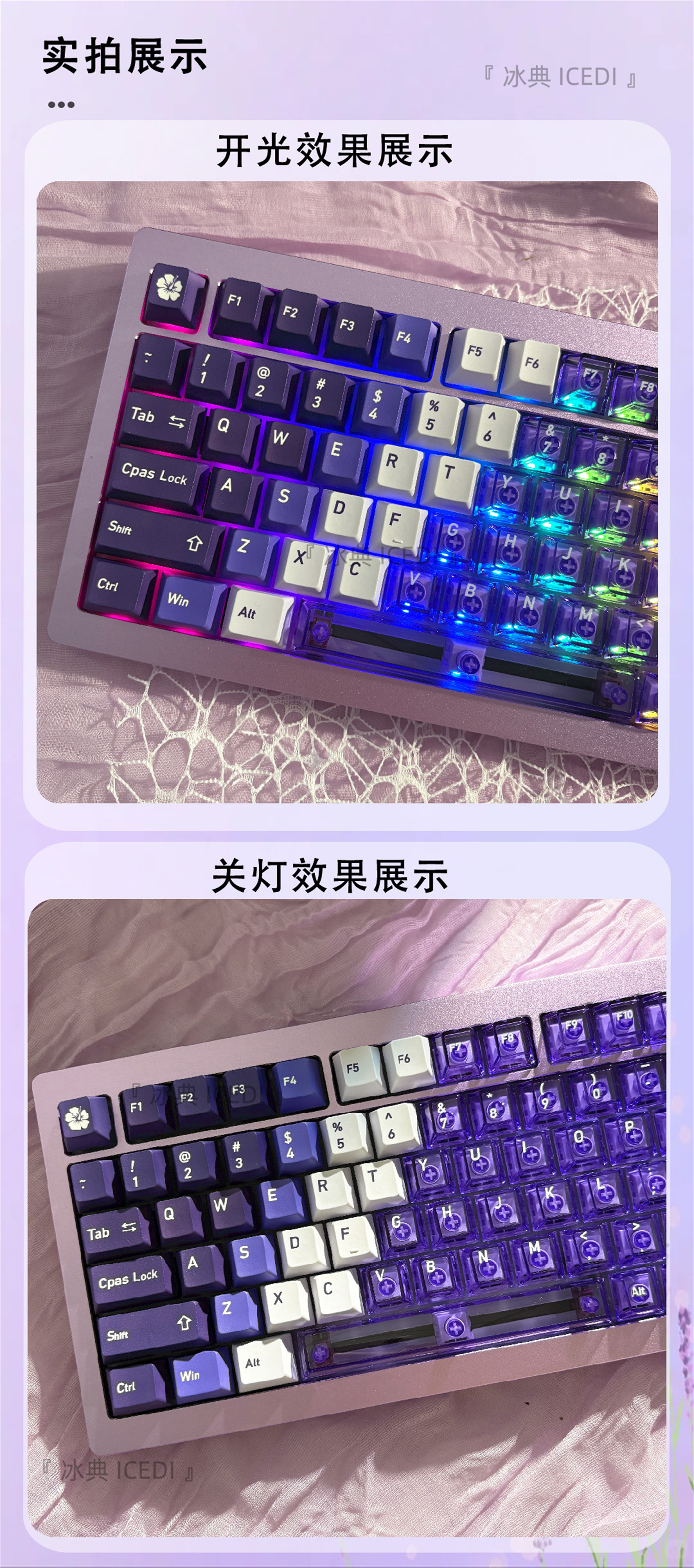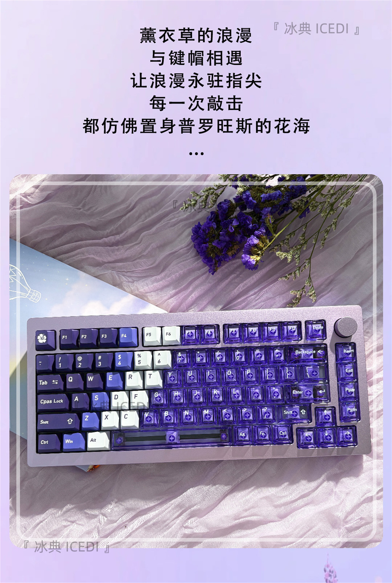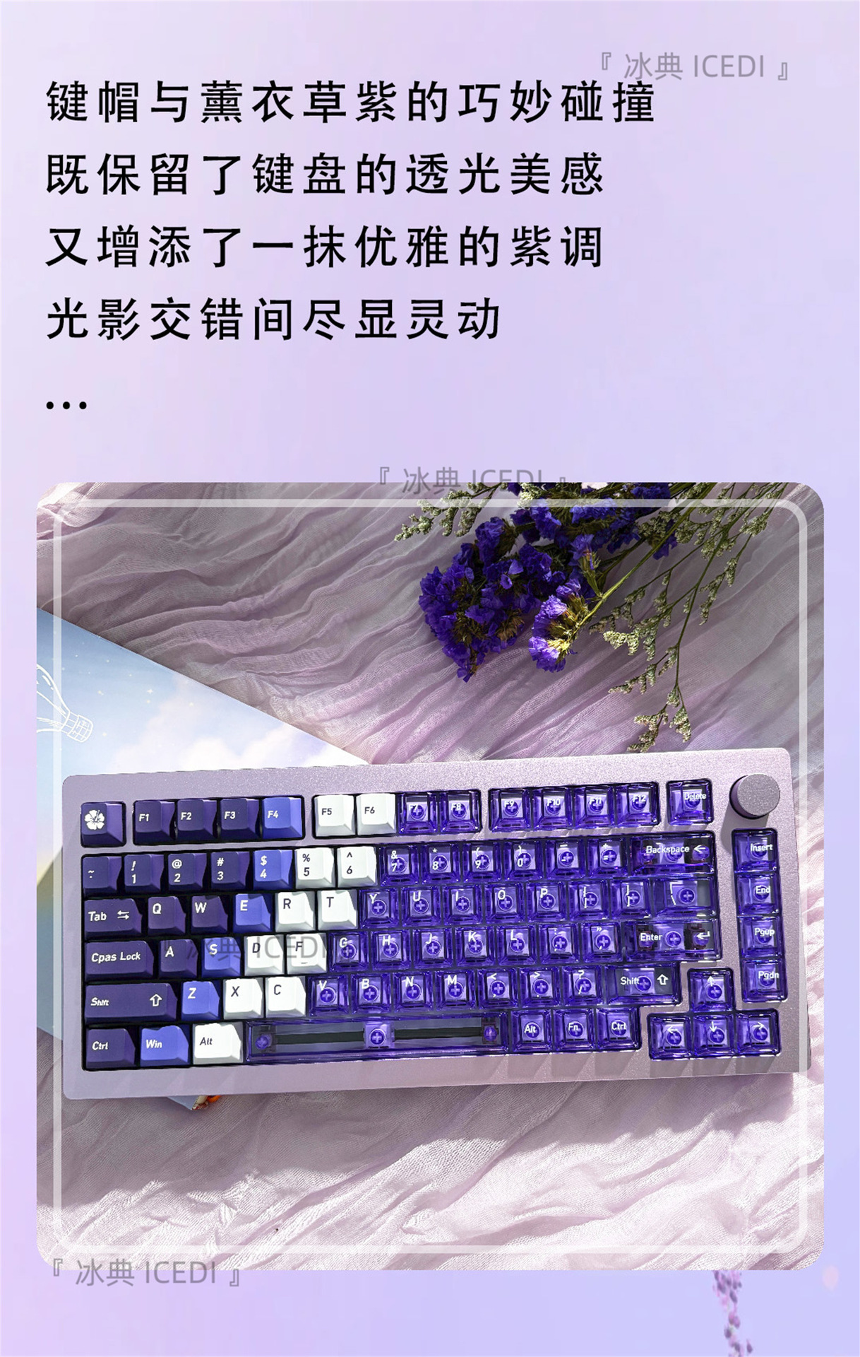Bingdian 라벤더 보라색 승화 투명 기계식 키캡 마그네틱 축 Bee Wooting 오리지널 더블 세트스토어 가기