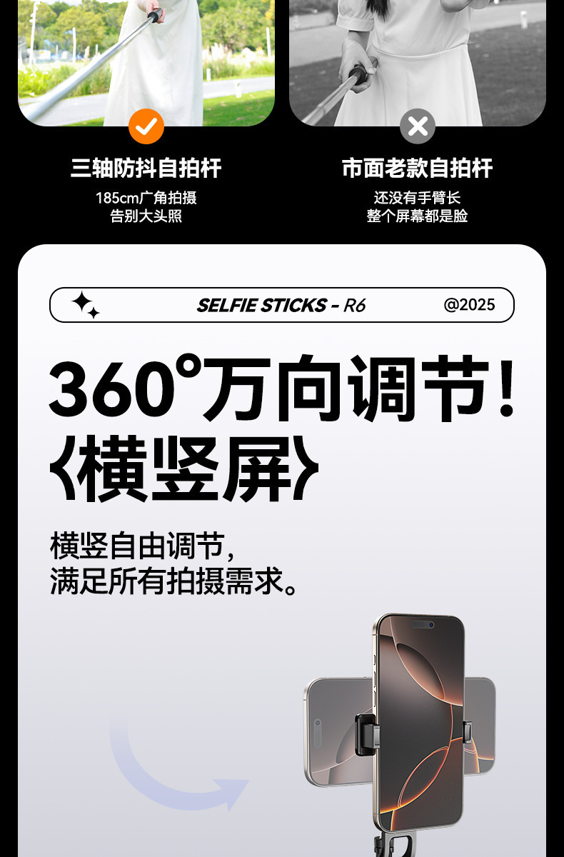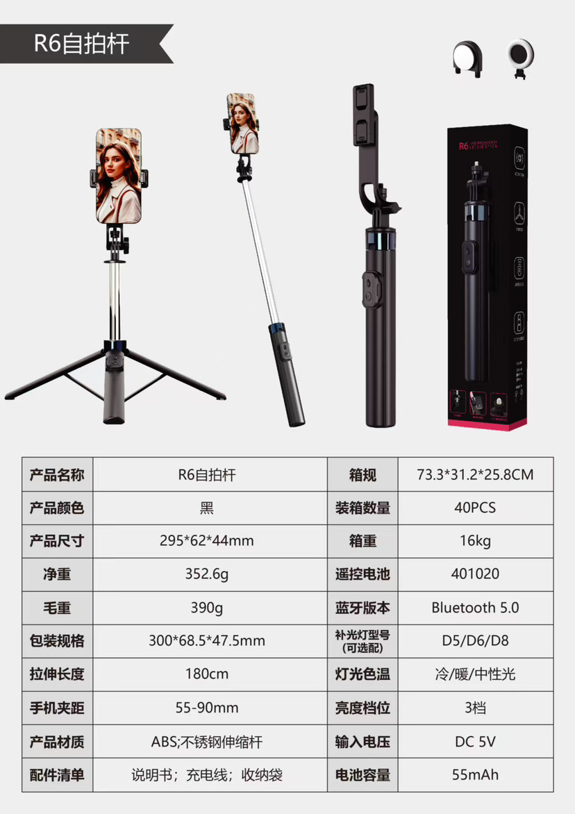 국경 간 새로운 R6 셀카 스틱 스테인레스 스틸 삼각대 텔레스코픽 바닥 라이브 방송 스탠드 사진 촬영 셀카 스틱스토어 가기