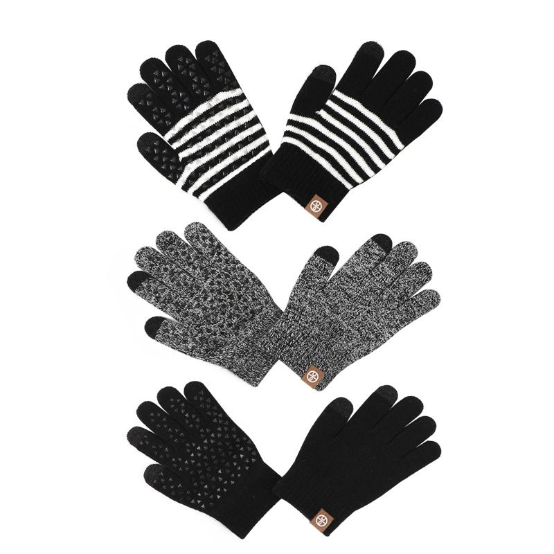 跨境爆款成人女男冬季双层触屏针织手套加绒加厚防寒骑行保暖手套