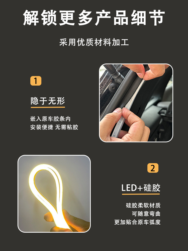 • 업그레이드된 핀 유형* 원래 자동차 소형 조명에 비파괴적으로 연결됨 [반원 2m - 따뜻한 노란색] 비파괴 설치