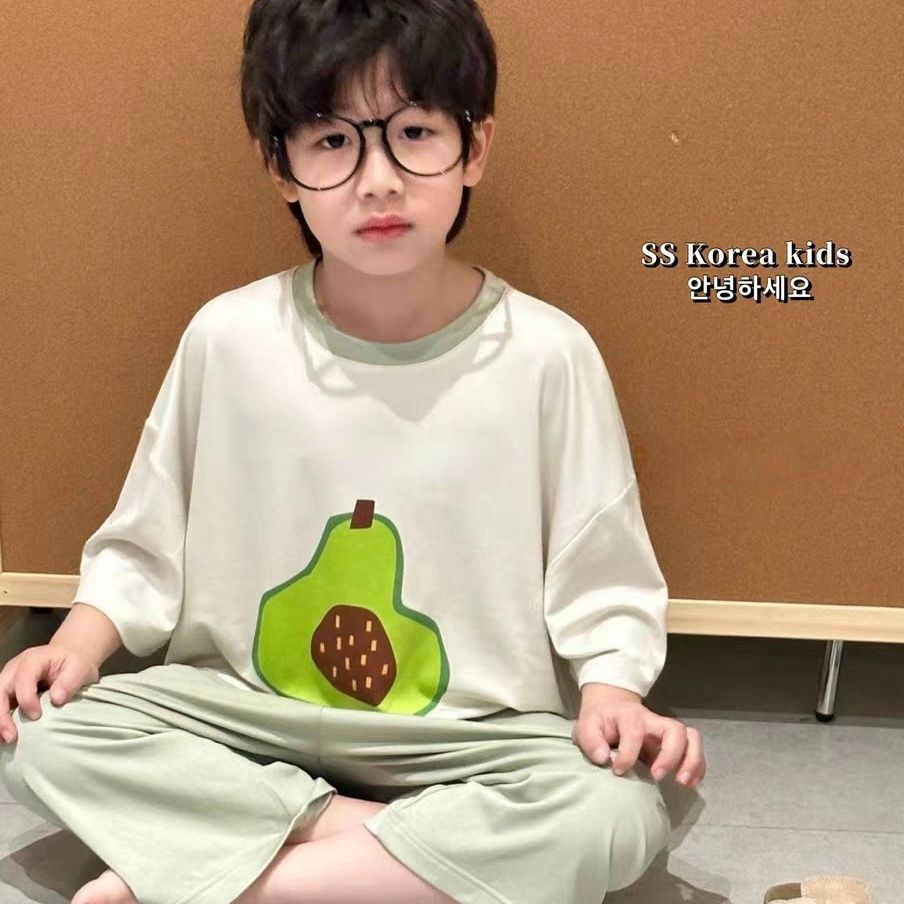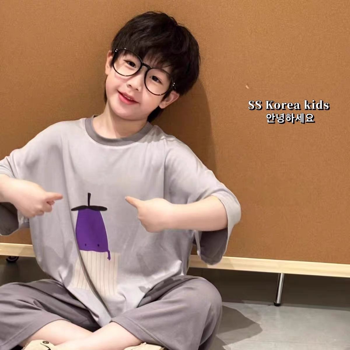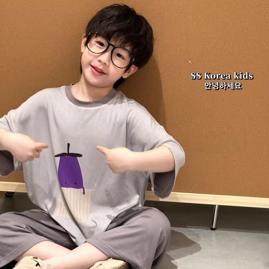 모달 어린이 가정 의류 2025 새로운 스타일 여름 소년과 소녀 만화 잠옷 잠옷 세트 노란색스토어 가기
