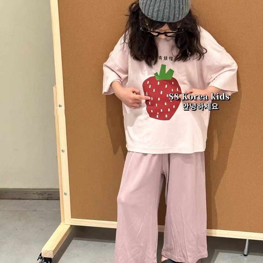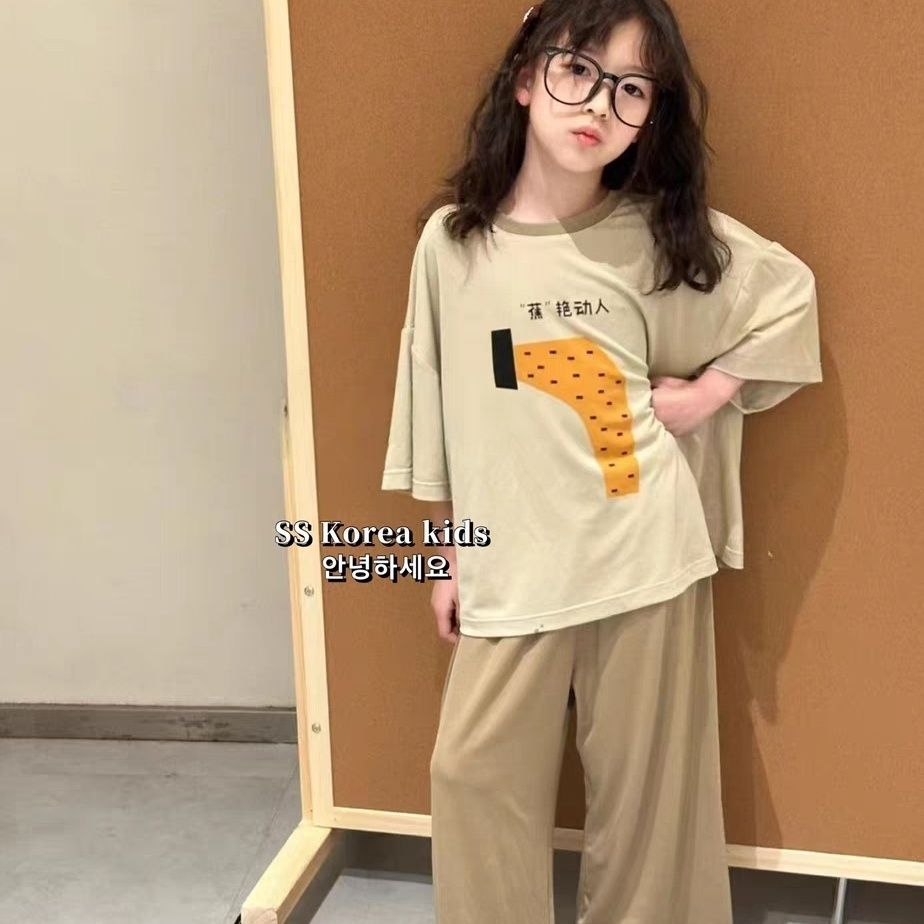 모달 어린이 가정 의류 2025 새로운 스타일 여름 소년과 소녀 만화 잠옷 잠옷 세트 노란색