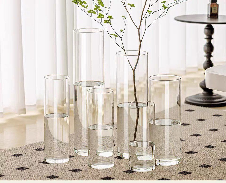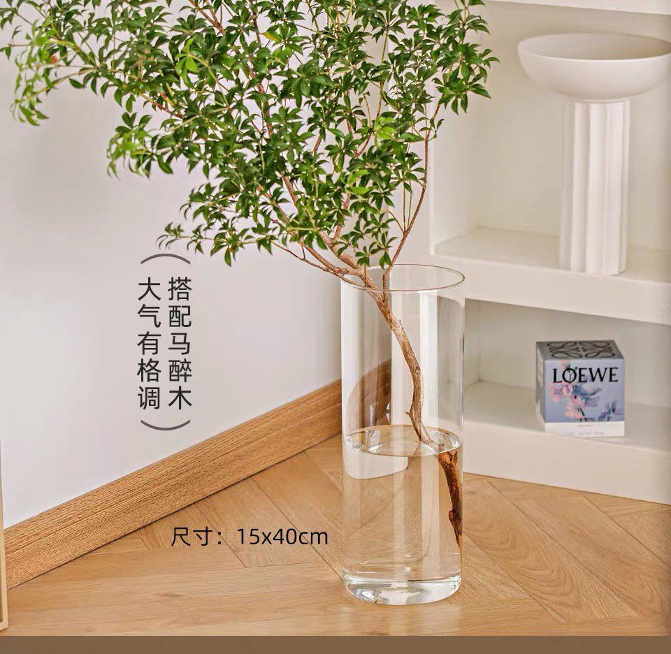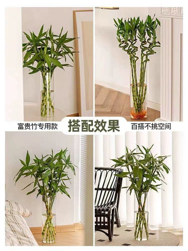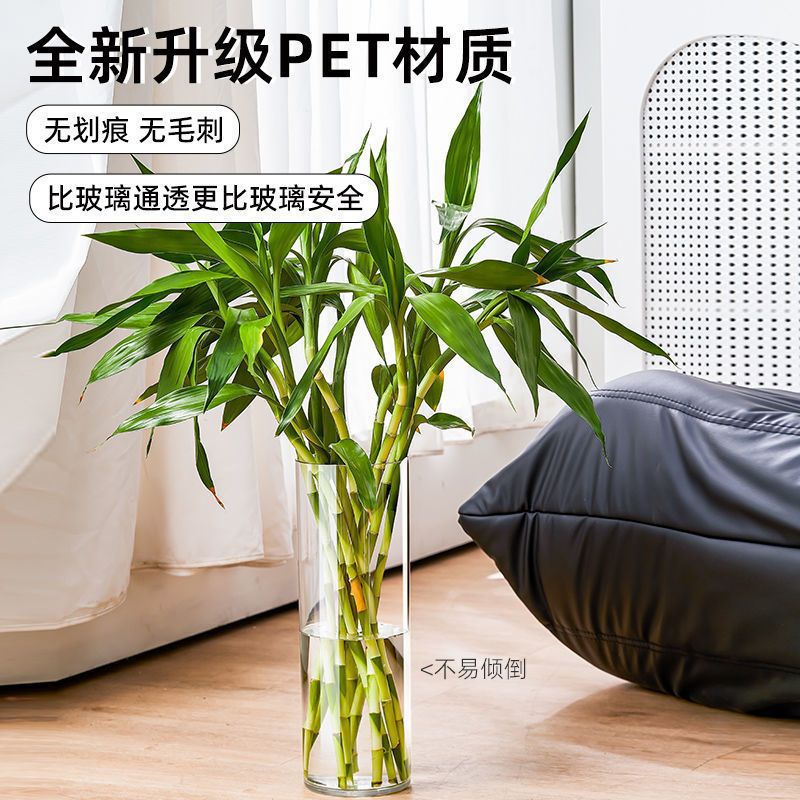 투명 아크릴 스트레이트 꽃병, 가벼운 고급 꽃통, 깊은 물 부자 대나무, 현대적인 거실 장식품, 바닥 꽃병스토어 가기