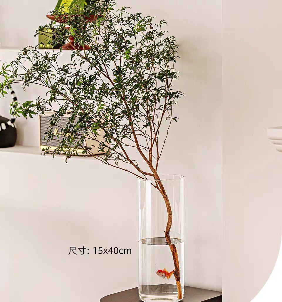투명 아크릴 스트레이트 꽃병, 가벼운 고급 꽃통, 깊은 물 부자 대나무, 현대적인 거실 장식품, 바닥 꽃병
