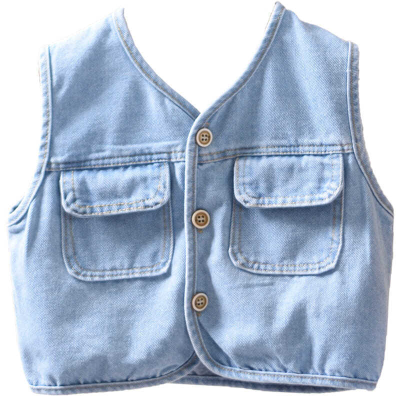 남아용 조끼, 봄, 가을 아우터, 유아용 조끼, 여아용 데님, 중소형 아동용 멋쟁이 한국식 조끼, 트렌디한 조끼스토어 가기