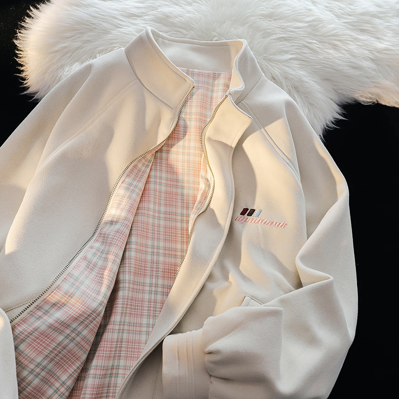 봄과 가을 여성을 위한 일본 복고풍 양면 재킷 대학 스타일 헤비급 루즈하고 다재다능한 커플 야구 재킷