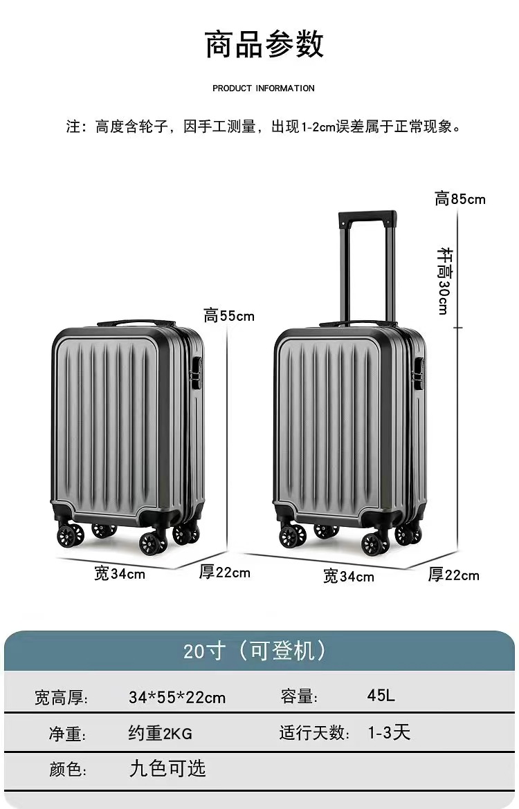 20inch pp 소재 여행 가방 작은 지퍼 상자 새로운 트롤리 상자 탑승 가방 암호 상자 대외 무역 도매