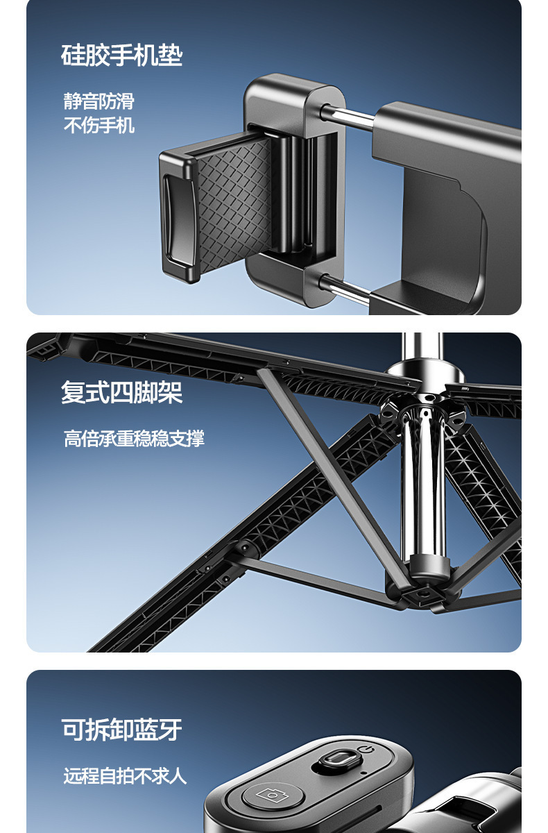 국경 간 R9 다기능 셀카 스틱 텔레스코픽 휴대용 사진 스탠드 스테인레스 스틸 라이브 방송 바닥 스탠드