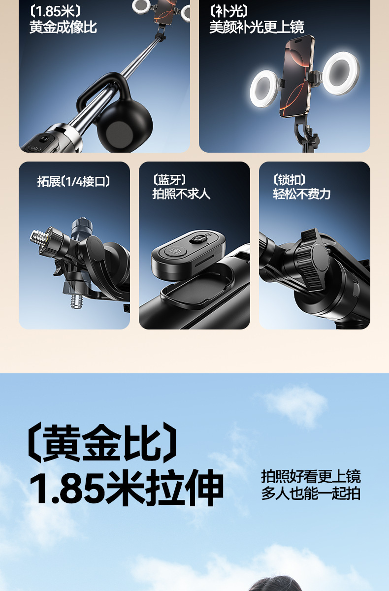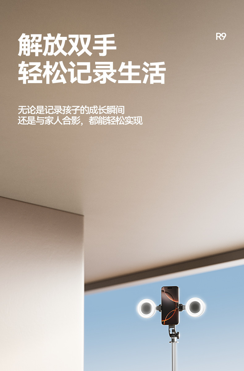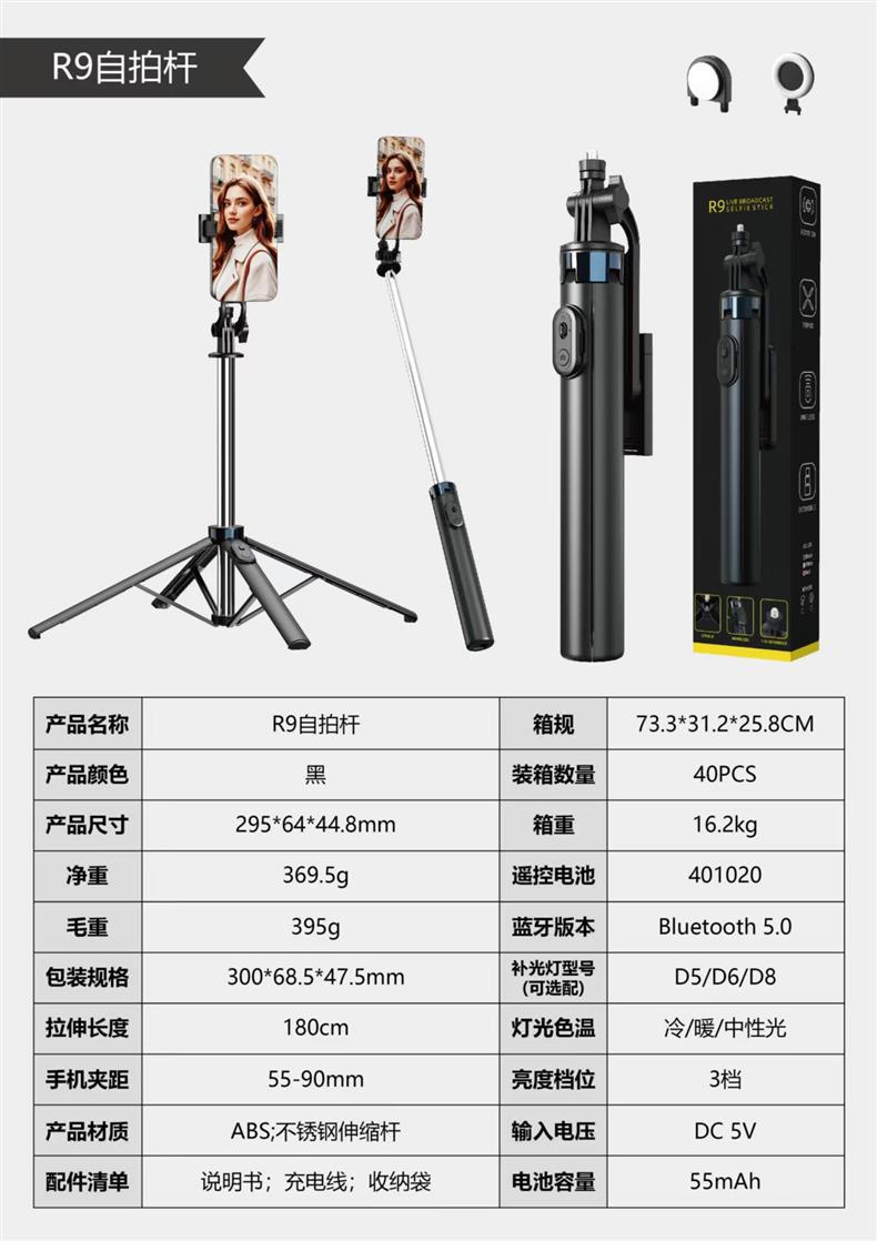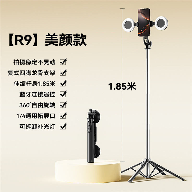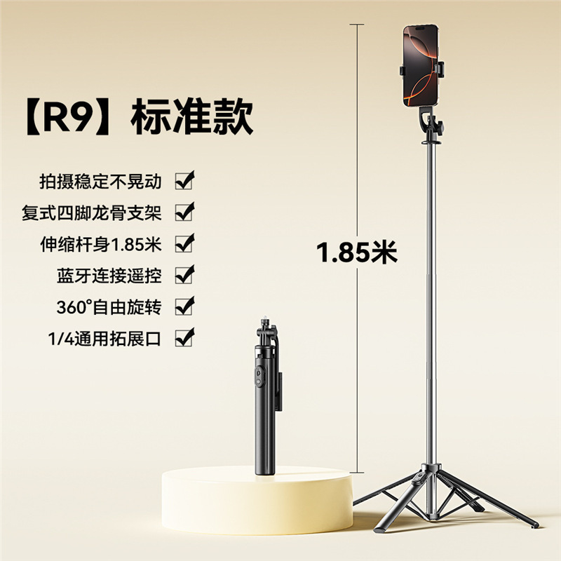 국경 간 R9 다기능 셀카 스틱 텔레스코픽 휴대용 사진 스탠드 스테인레스 스틸 라이브 방송 바닥 스탠드스토어 가기