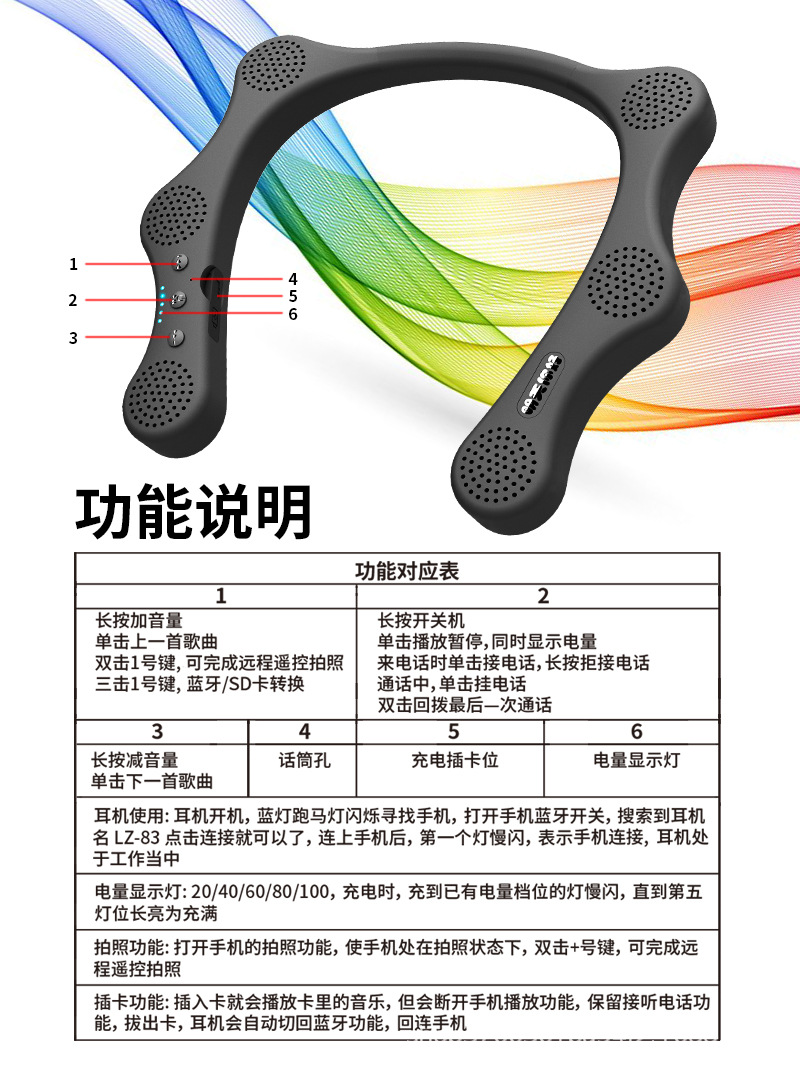메모리 카드를 삽입할 수 있는 홀터넥 블루투스 스피커, 스포츠 오디오, 휴대폰 MP3 음악, 이중 기능 전원 디스플레이 LZ-83