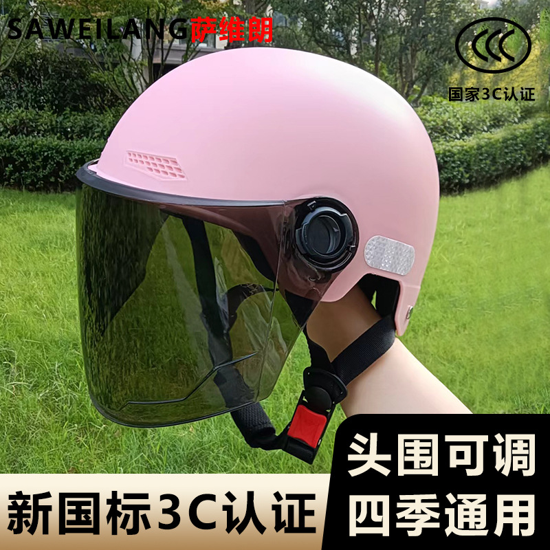 사계절 고화질 안전 헬멧 3c 인증 헬멧 남성용 및 여성용 전기 자동차 배터리 가을 겨울 반 헬멧 여름 자외선 차단