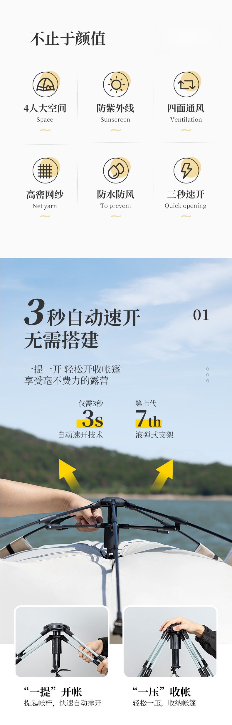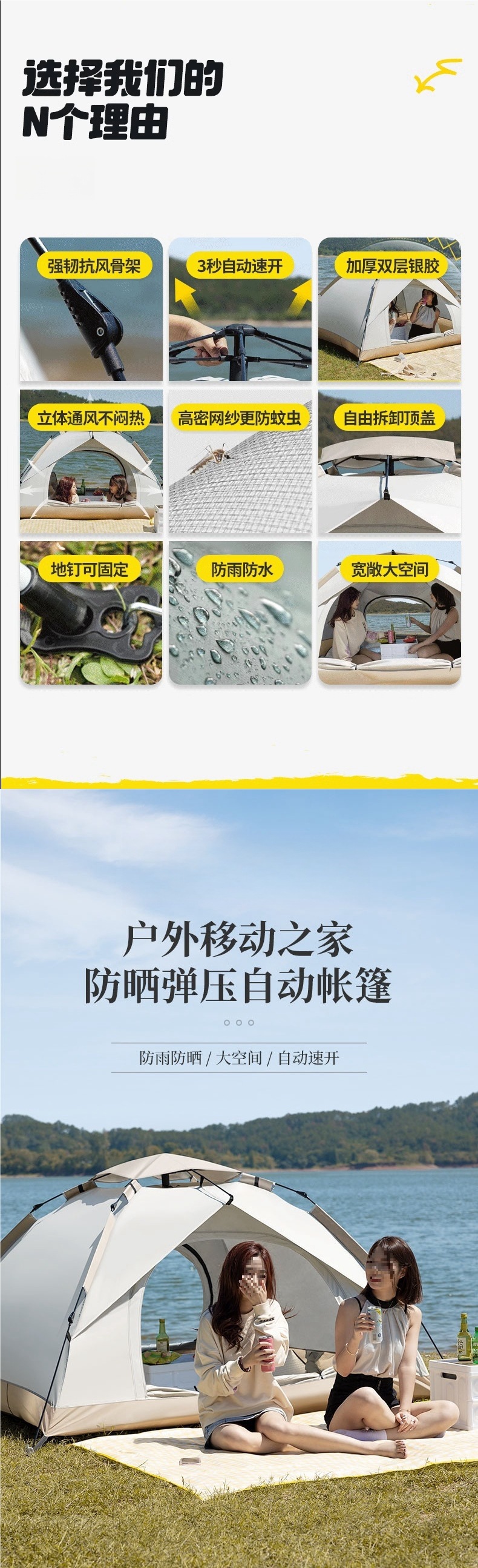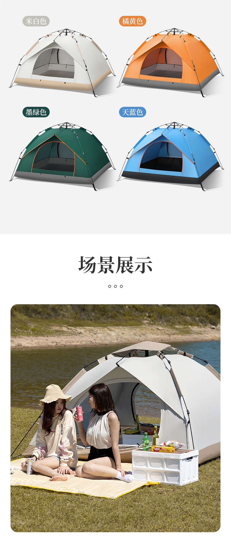 야간 장비, 빠르게 열리는 텐트, 야외 완전 자동 접이식 독일 자외선 차단제, 휴대용 캠핑, 방수 및 두꺼운 캠핑스토어 가기