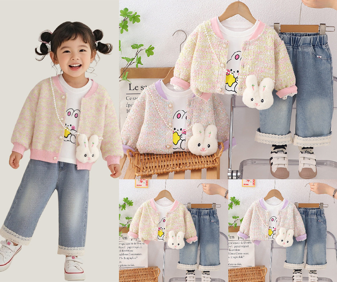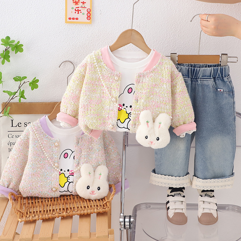 여자 봄, 가을 코트 정장 2025 새로운 어린 소녀 아기 3 피스 세트 어린이 스타일 인터넷 연예인 슈트스토어 가기