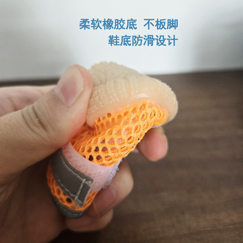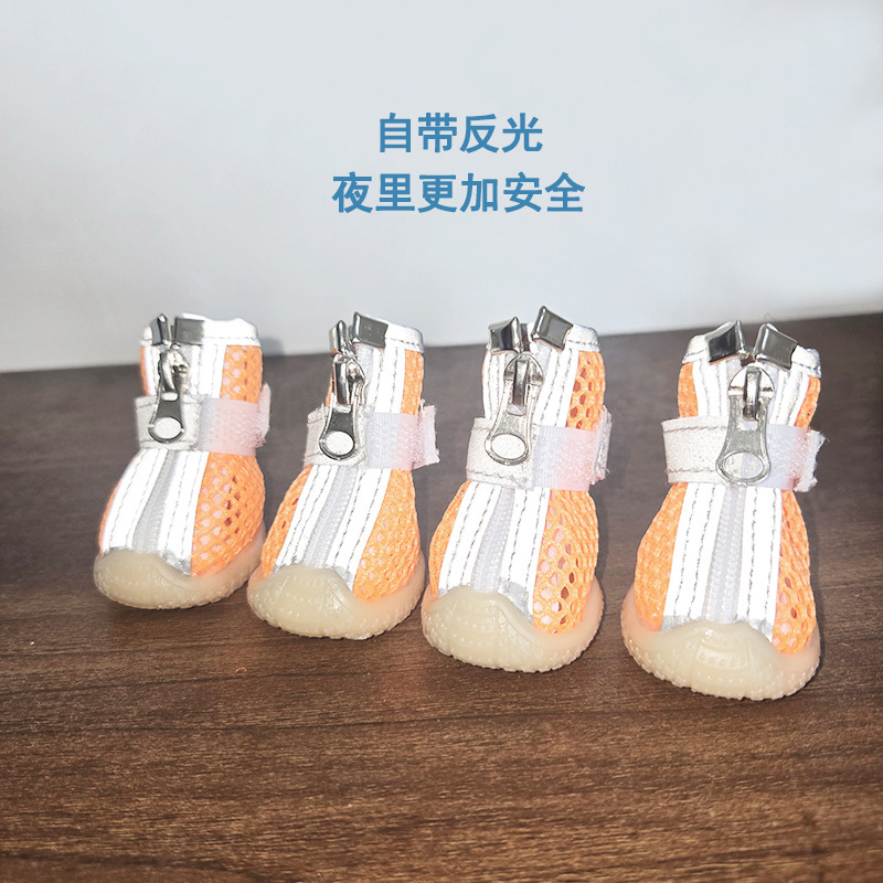 소형견 테디 비숑 특수 지퍼 반사 신발 부드러운 밑창 내마모성 및 더러운 방지 강아지 신발 메쉬 신발 통기성 샌들