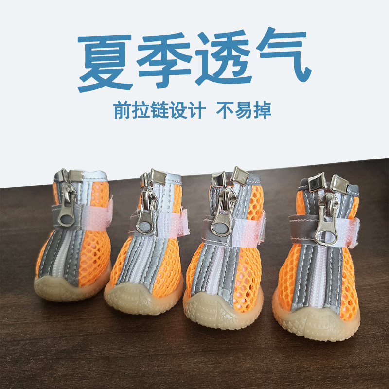 소형견 테디 비숑 특수 지퍼 반사 신발 부드러운 밑창 내마모성 및 더러운 방지 강아지 신발 메쉬 신발 통기성 샌들스토어 가기