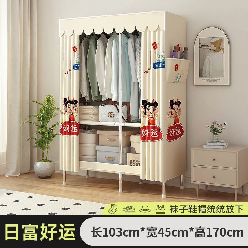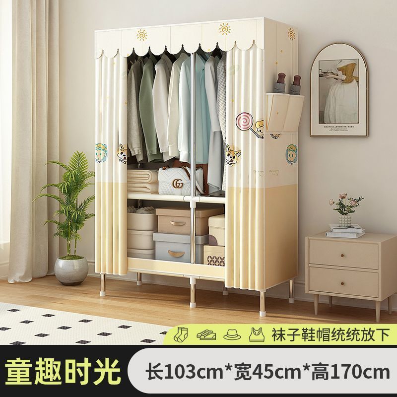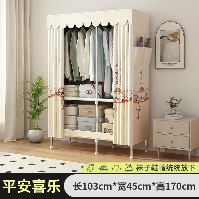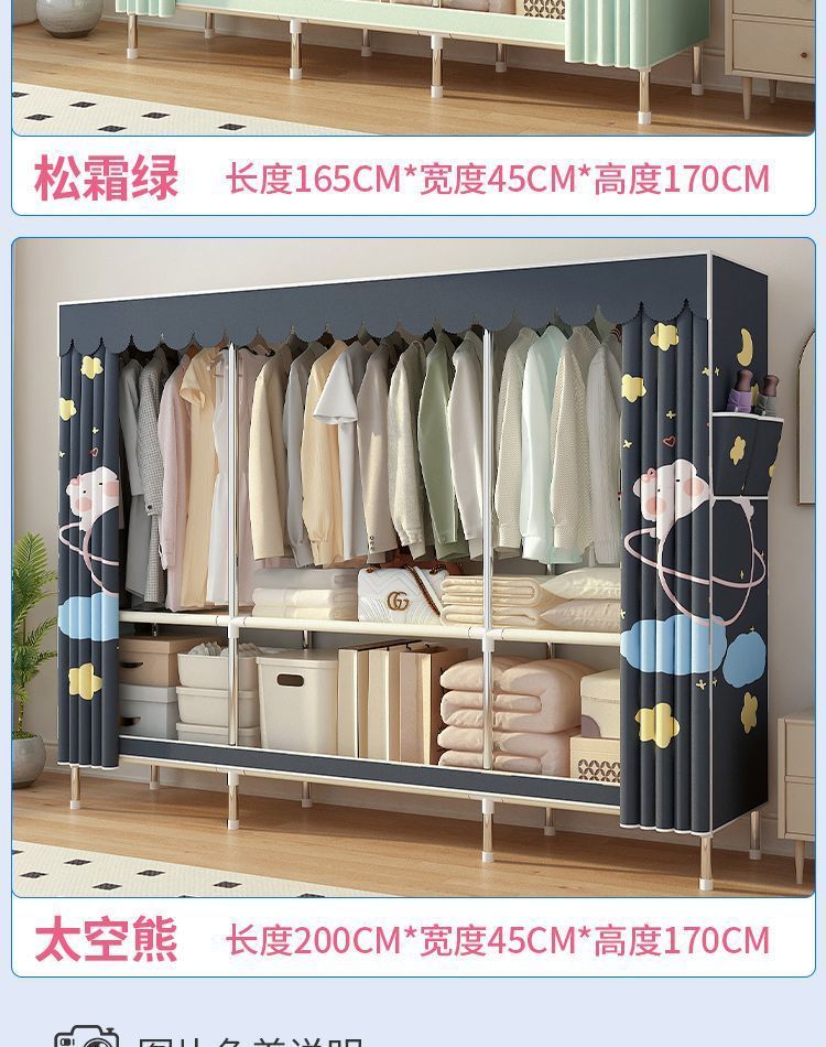 간단한 천 옷장 조립 강철 파이프 두꺼운 강화 임대 주택 침실 외부 커버 경제적 인 보관 캐비닛 옷장스토어 가기