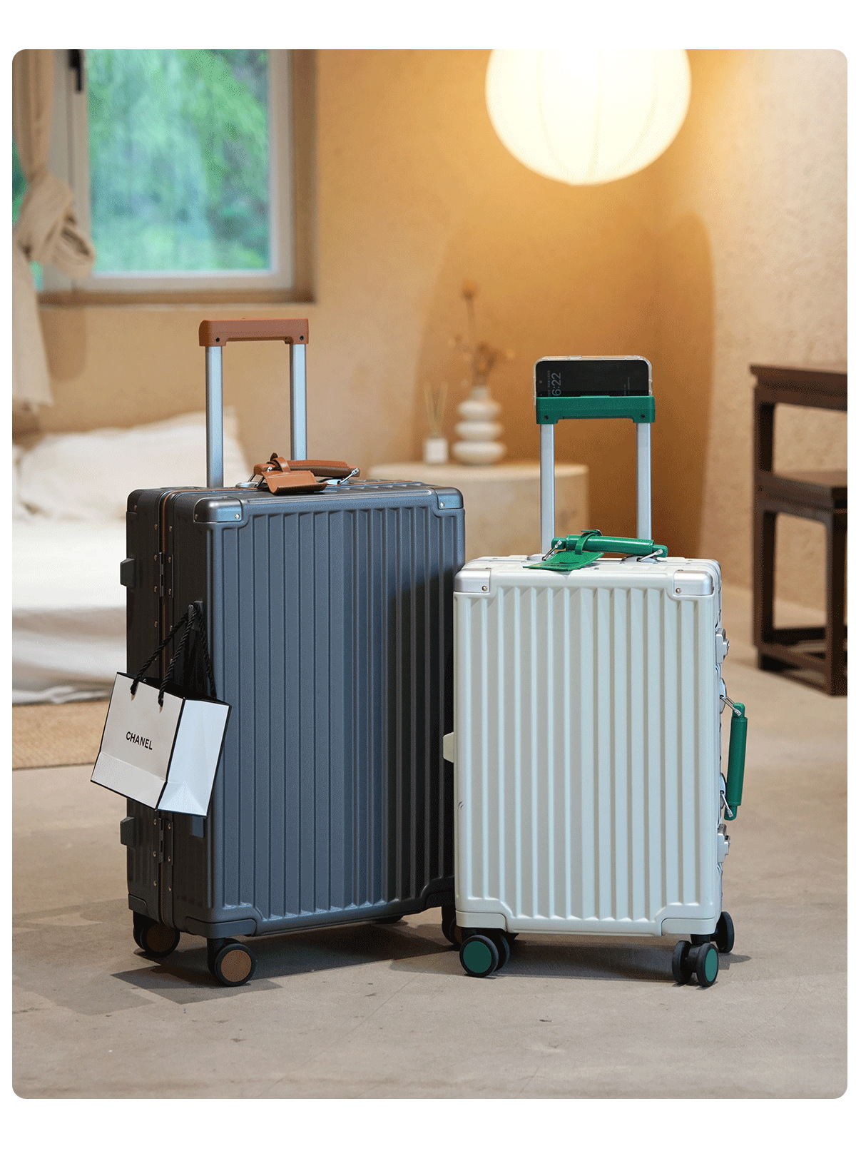 25 새로운 대용량 가방 여성용 다기능 알루미늄 프레임 트롤리 케이스 새로운 강력하고 내구성이 뛰어난 탑승 비밀번호 가방스토어 가기