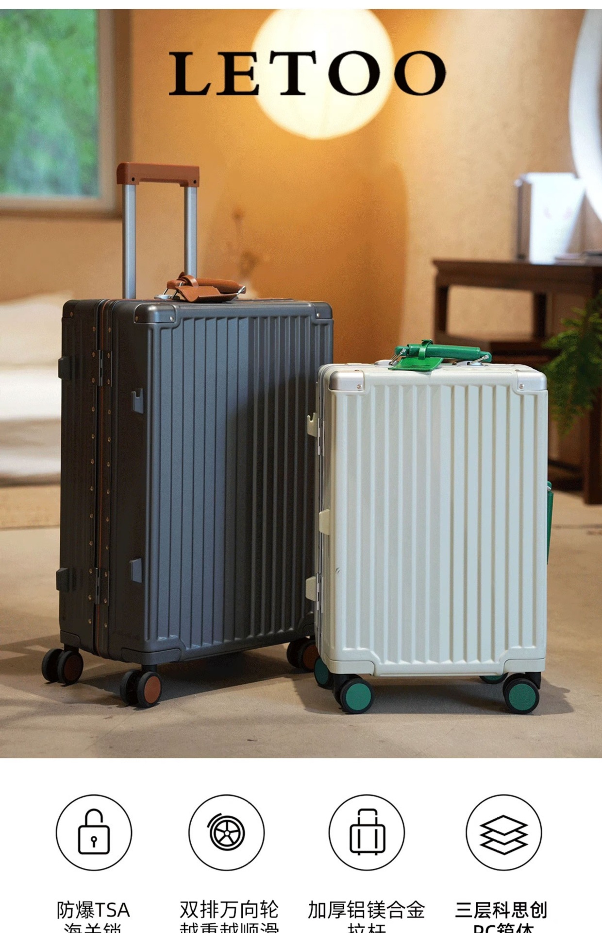 25 새로운 대용량 가방 여성용 다기능 알루미늄 프레임 트롤리 케이스 새로운 강력하고 내구성이 뛰어난 탑승 비밀번호 가방