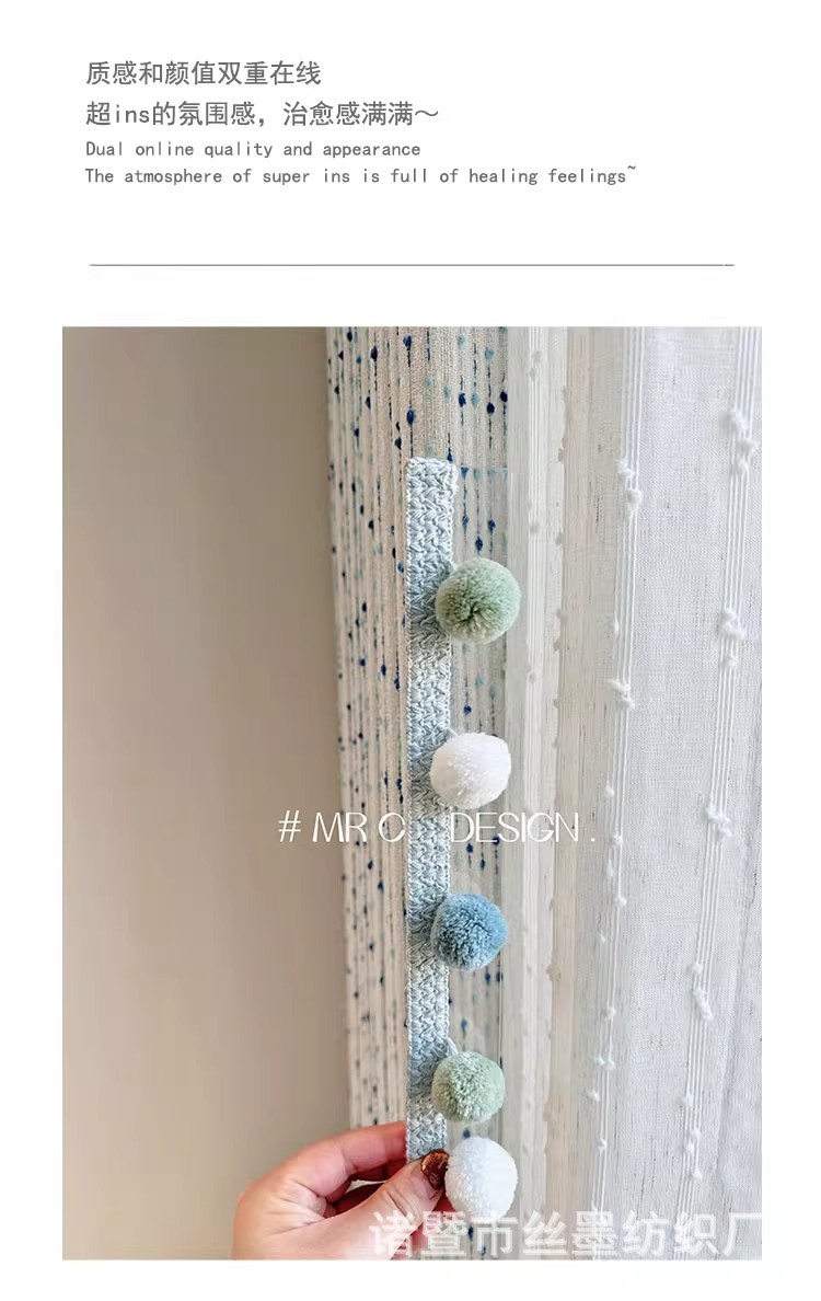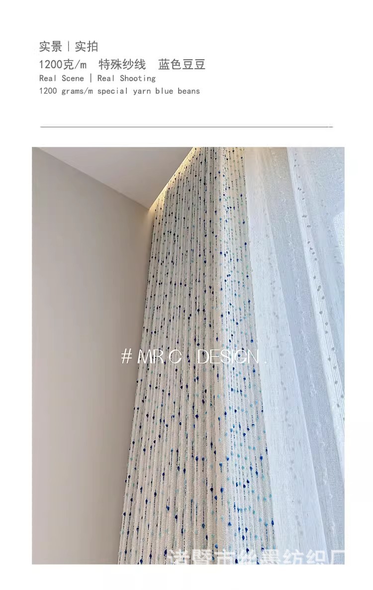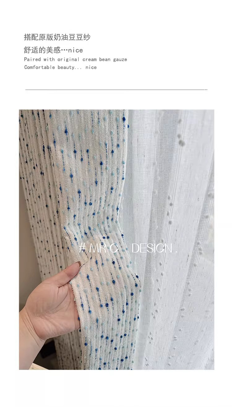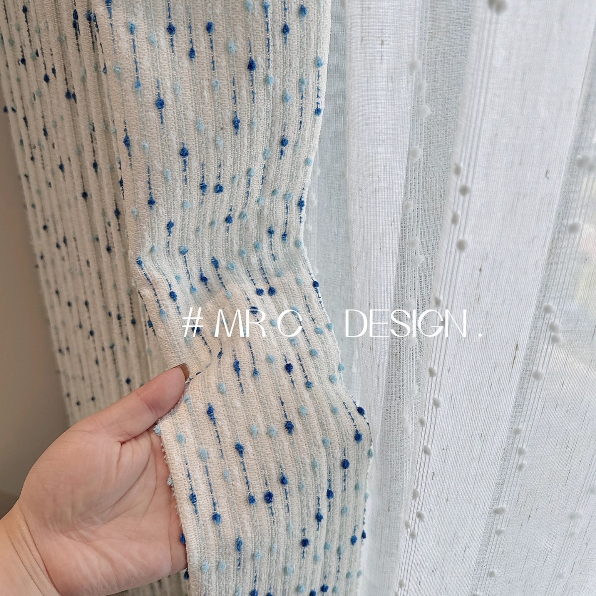 블루 아이스크림 크림 스타일 남자아이 방 침실 커튼 2026년 신상품 어린이방 베이 창문 셔닐 원단스토어 가기