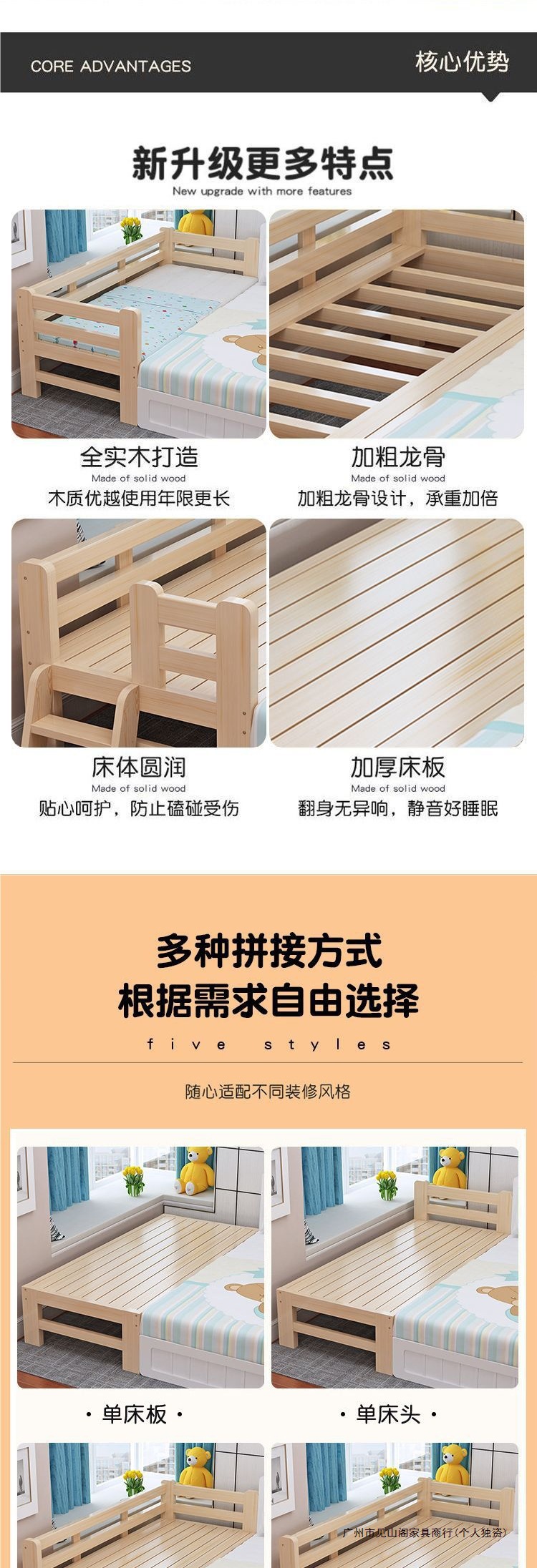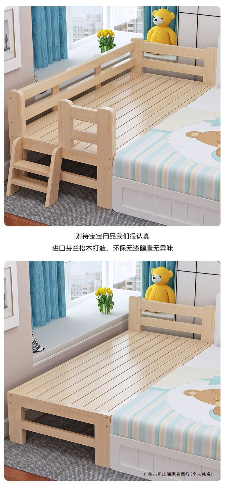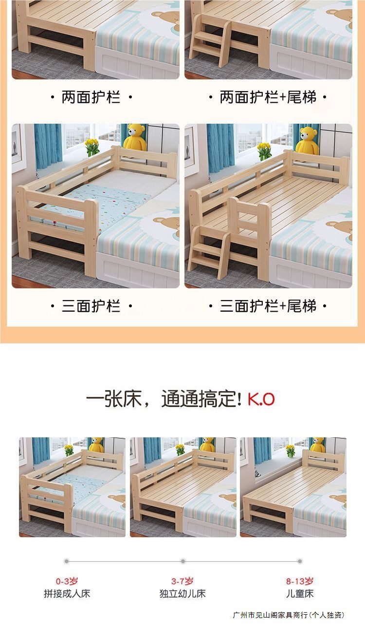 가정용 원목 접합 침대 어린이 침대 싱글 확장 침대 옆 침대 가드 레일 아기 침대 접합 대형 침대