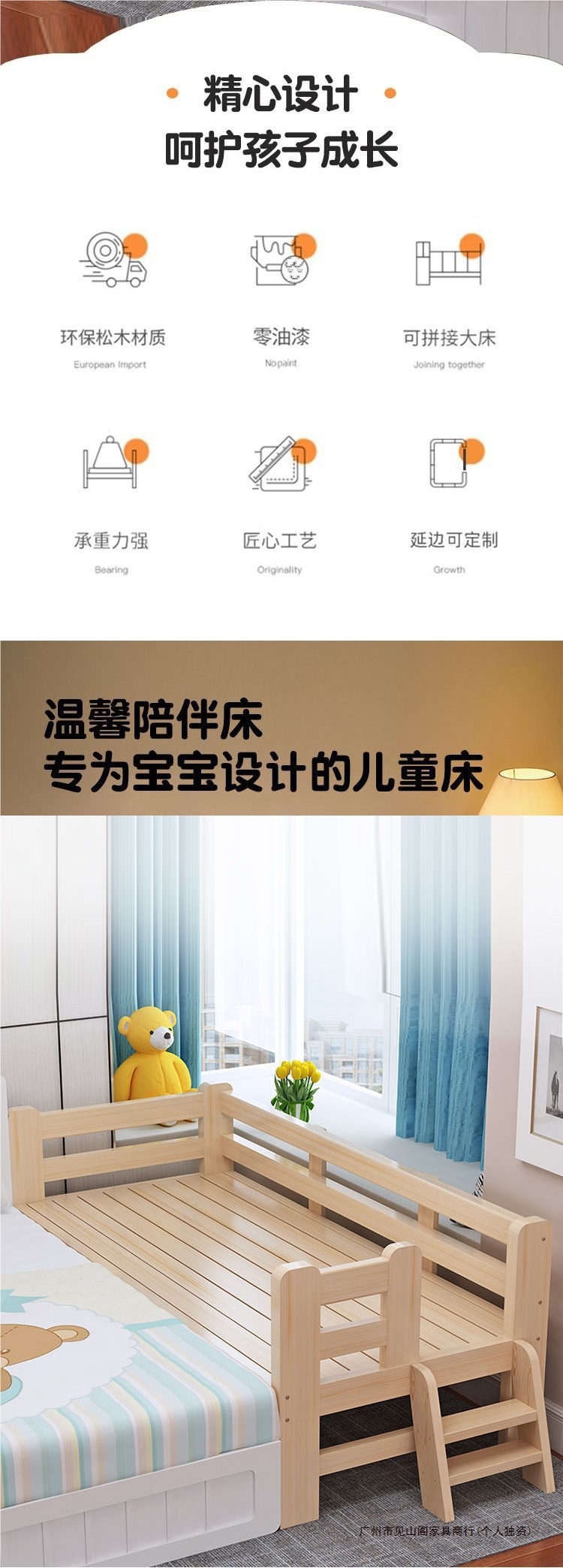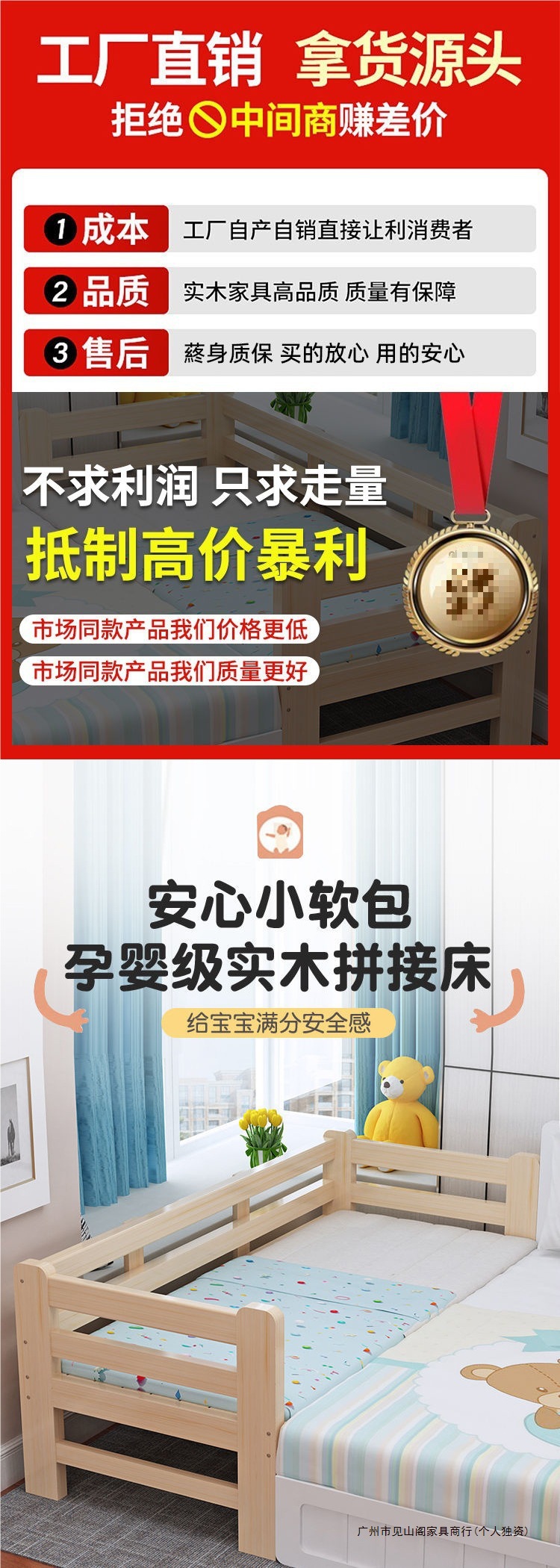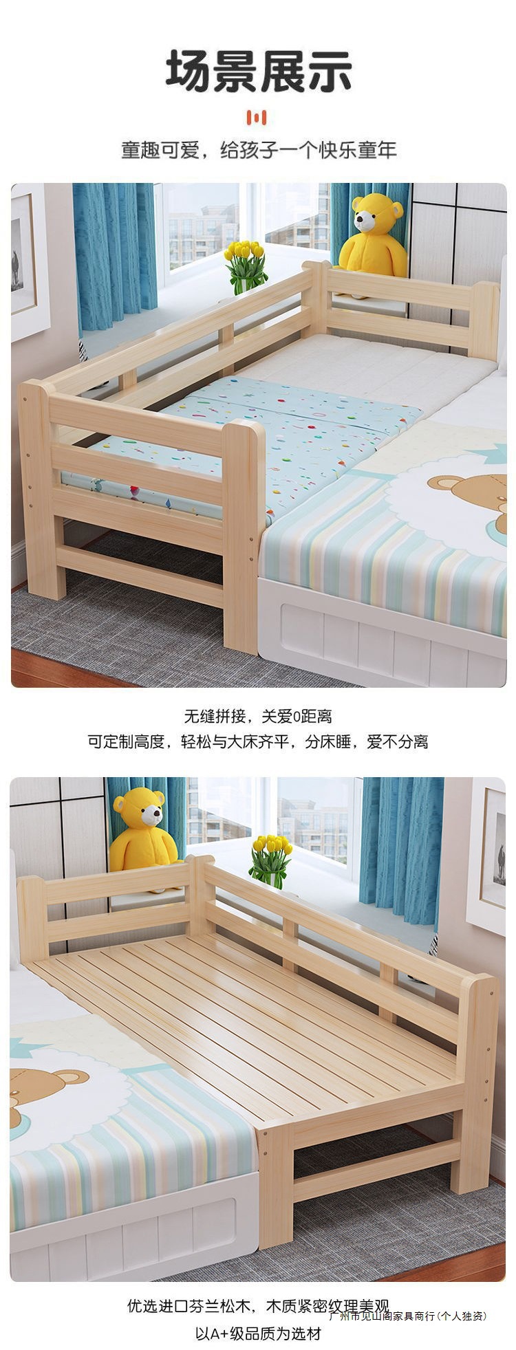 가정용 원목 접합 침대 어린이 침대 싱글 확장 침대 옆 침대 가드 레일 아기 침대 접합 대형 침대
