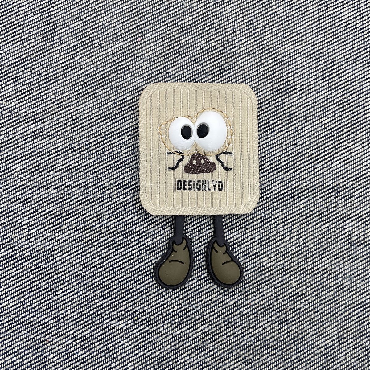 직사각형 귀여운 큰 눈 긴 다리 작은 사람의 주머니 천 라벨 배낭 아동 의류 남성 의류 액세서리 라벨