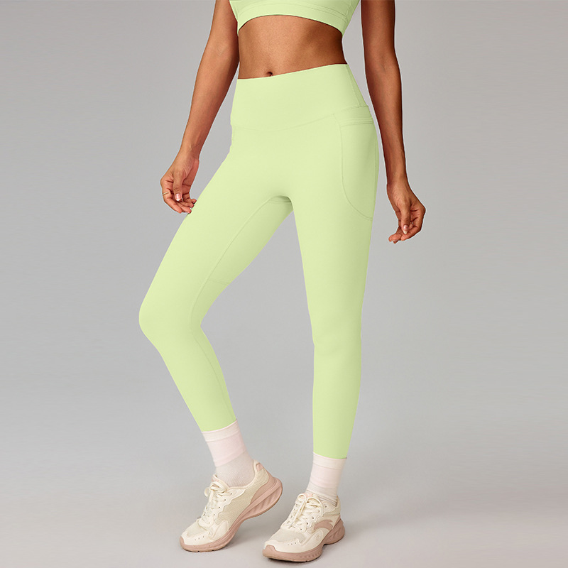 통기성 좋은 클라우드 감촉의 하이웨이스트 힙업 요가 팬츠, 포켓이 있는 타이트한 스포츠 러닝 속건 피트니스 팬츠 6425